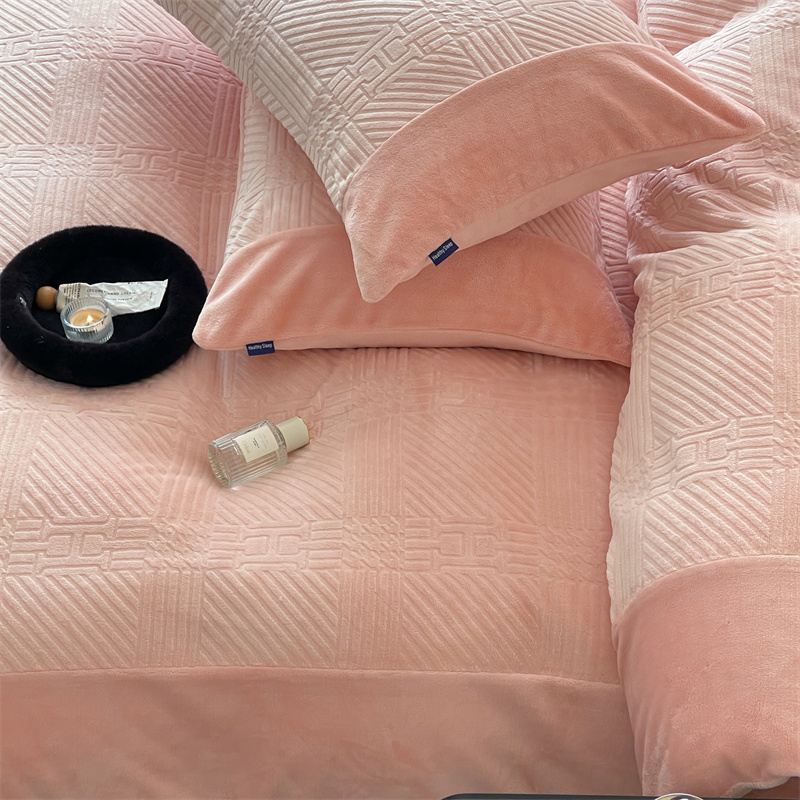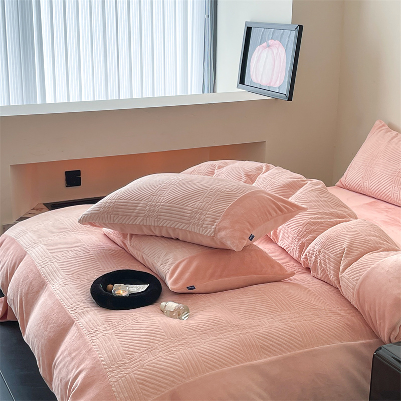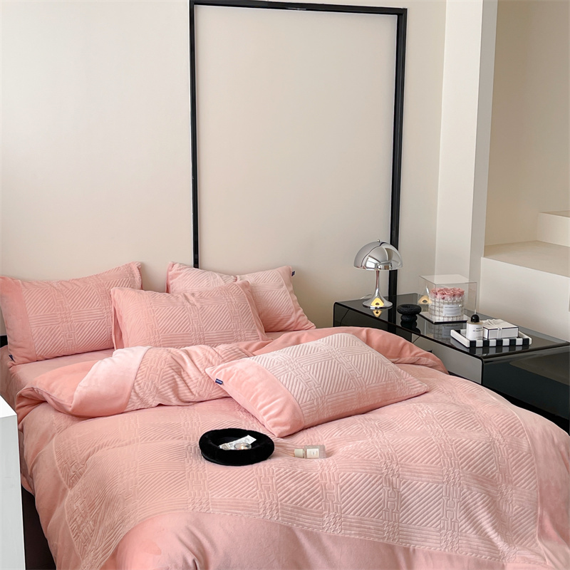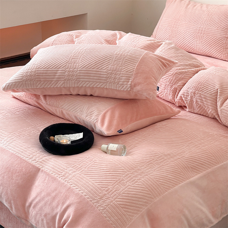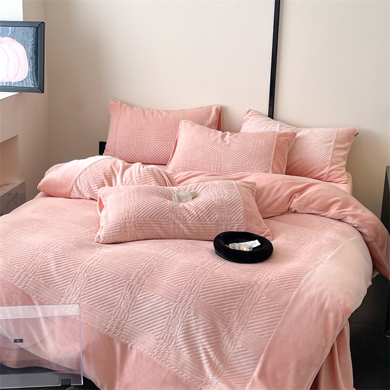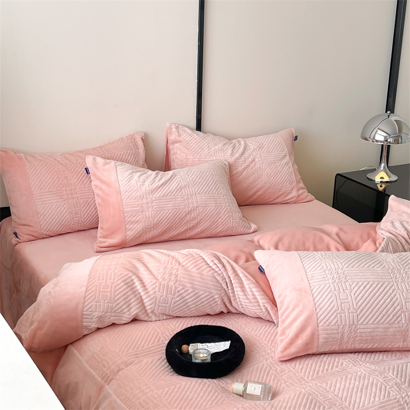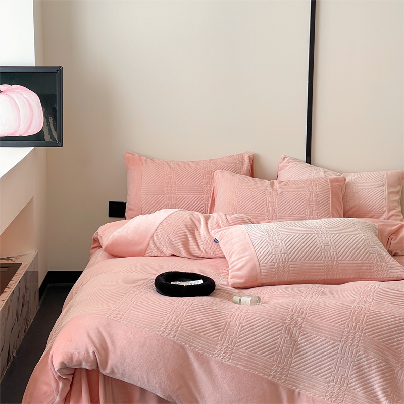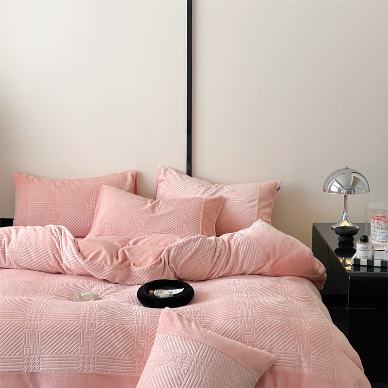 商品名称:顾里 2023新款H系列雕花绒四件套 H粉
