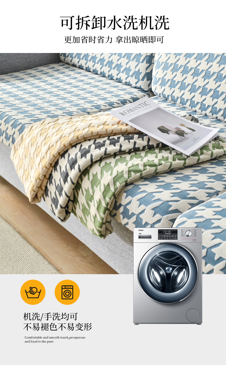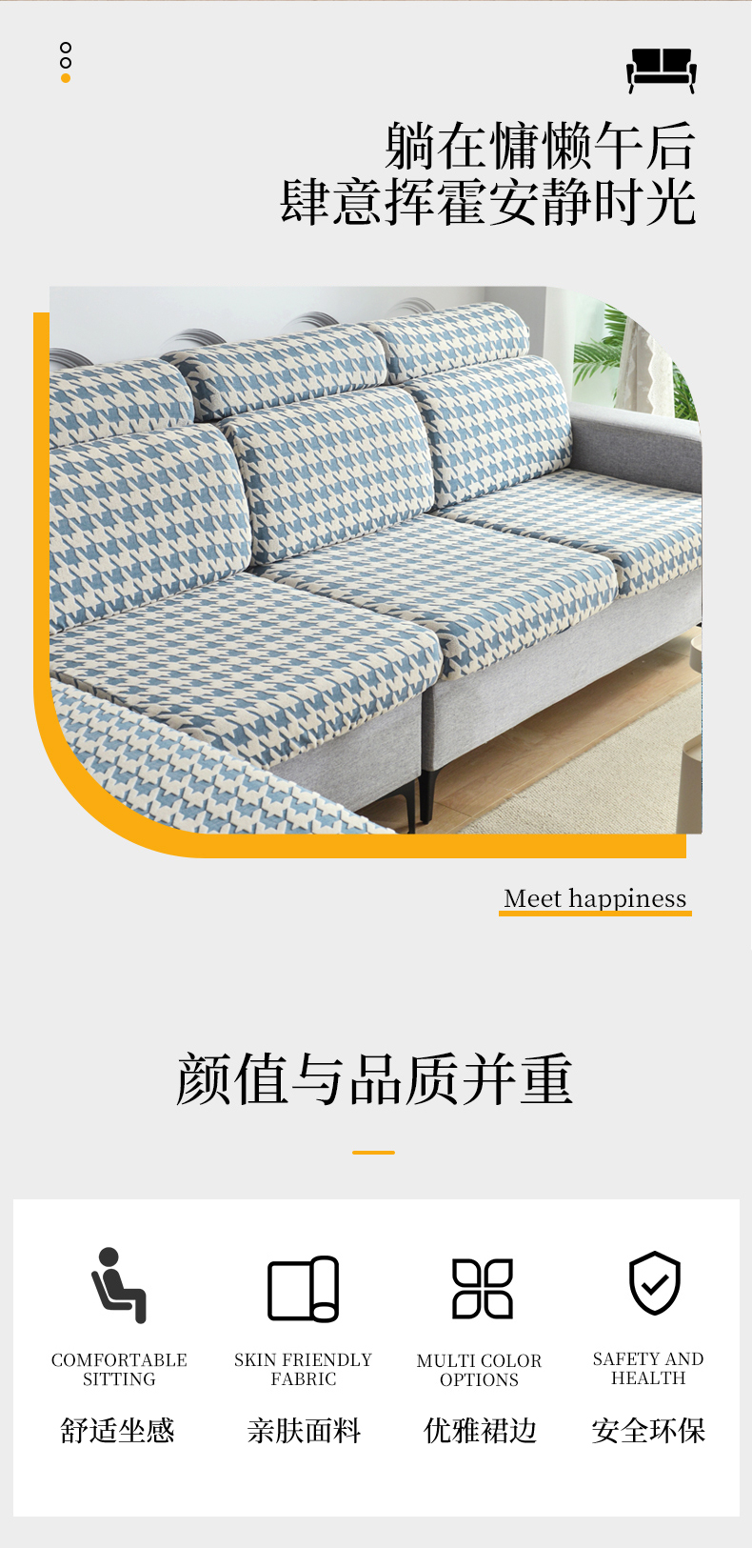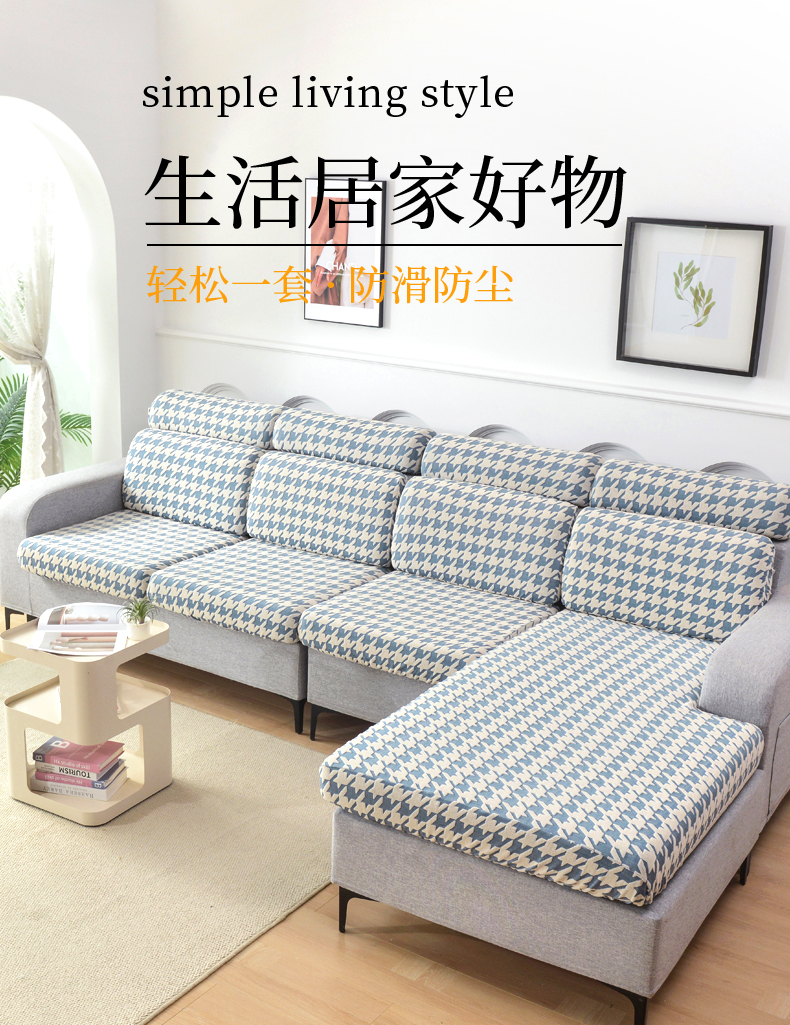 当前位置: 91家纺网 > 商品网购 > 居家布艺 > 坐垫/椅垫/沙发垫 > 沙发垫 > 千彤沙发垫 2024常规款粗线棉麻千鸟格沙发套 蓝色