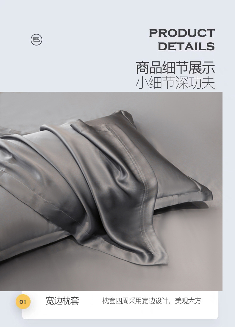商品名称:凯森家纺 2024重磅单面纯真丝枕套桑蚕丝枕芯套单人枕头套 金属灰