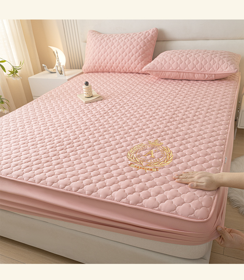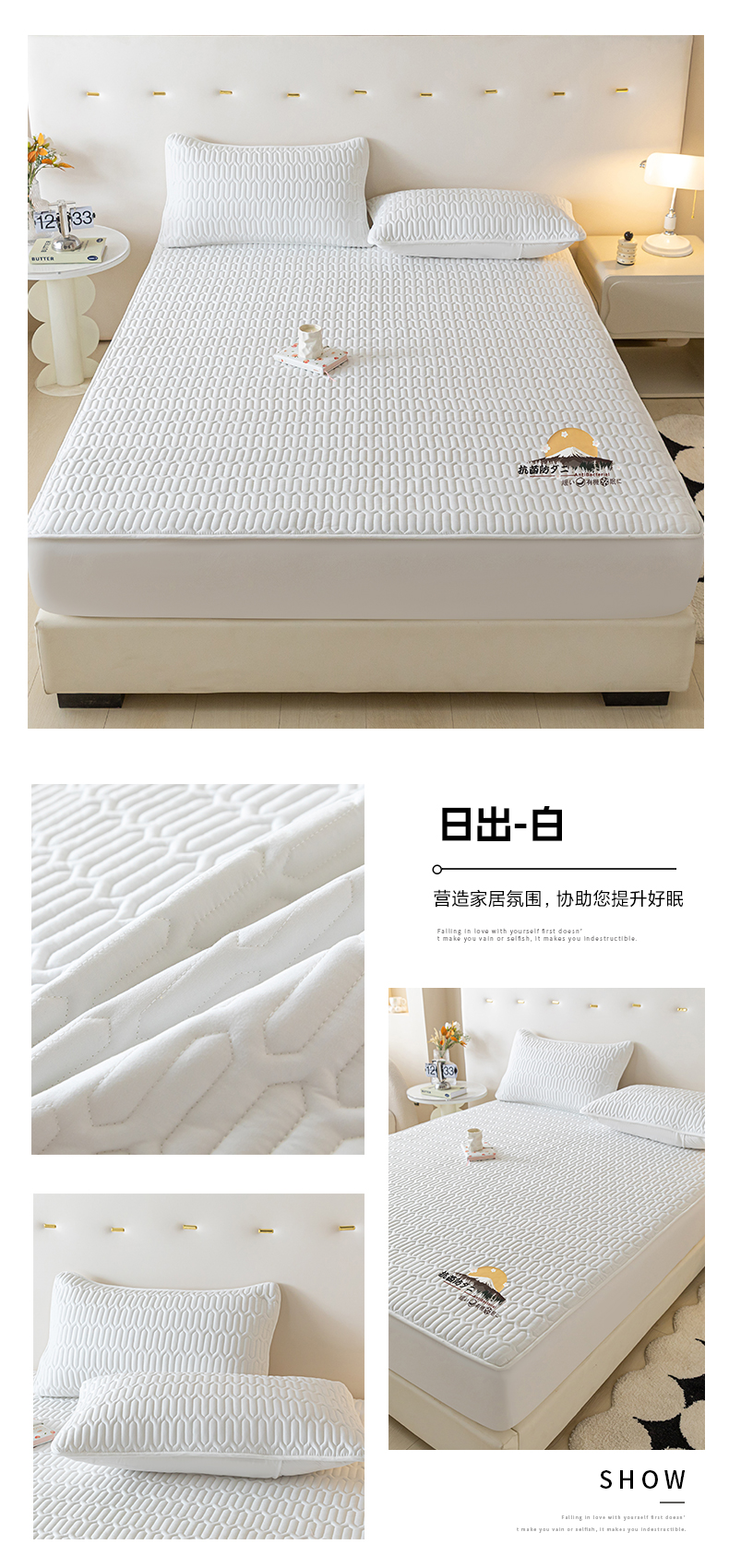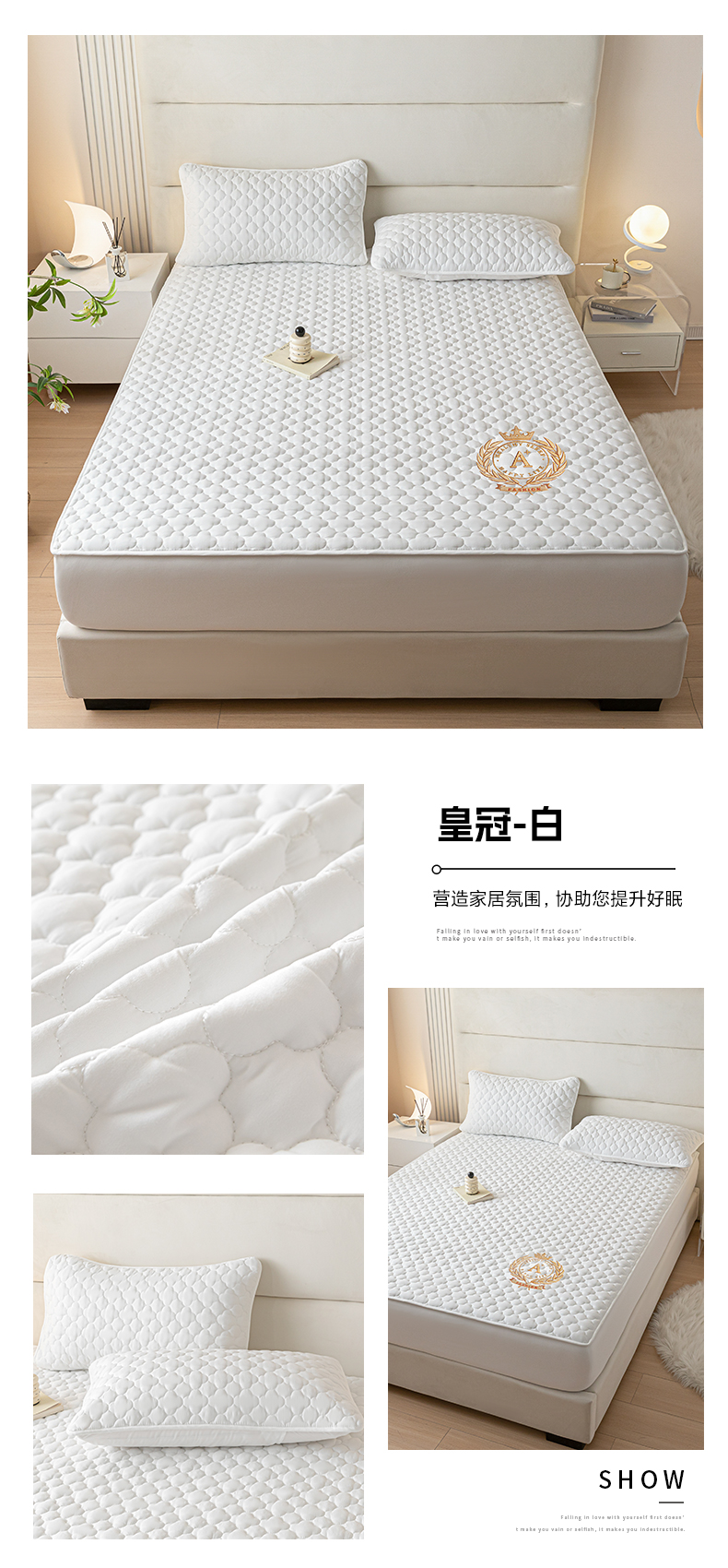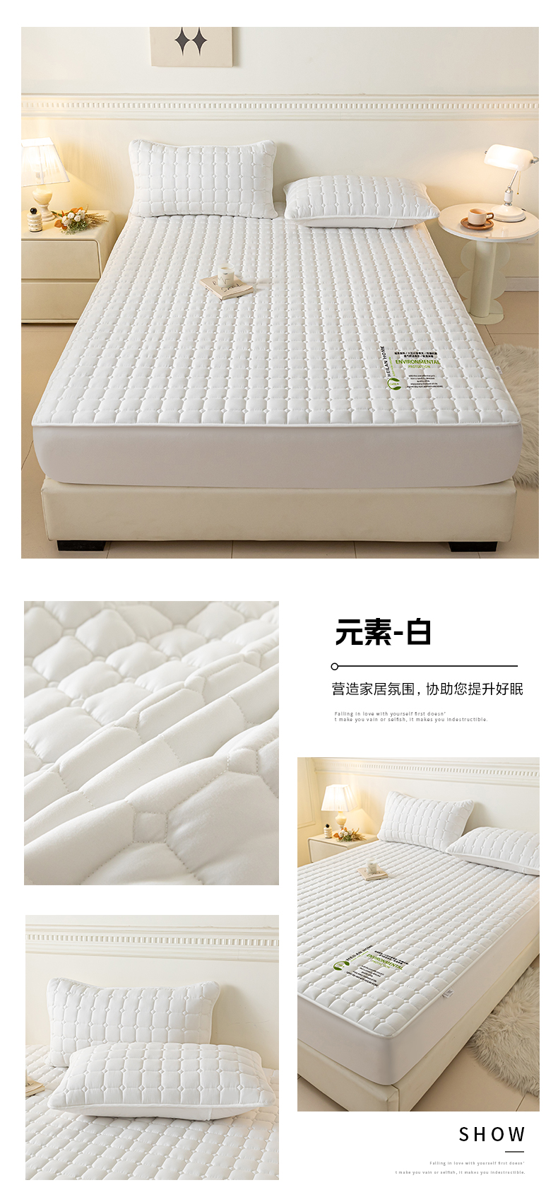 (总)卡伦 2025新款原棉抗菌大豆纤维防水夹棉床笠,白色,淡粉,果绿,卡其,水蓝,星灰