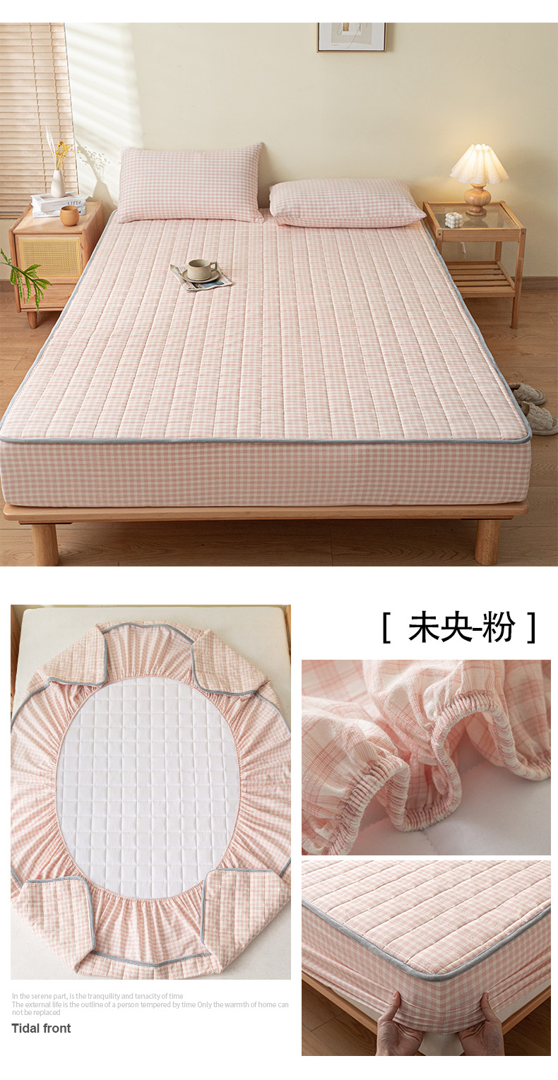 商品名称:ab家纺 2024新款色织全棉夹棉床笠 未央-粉