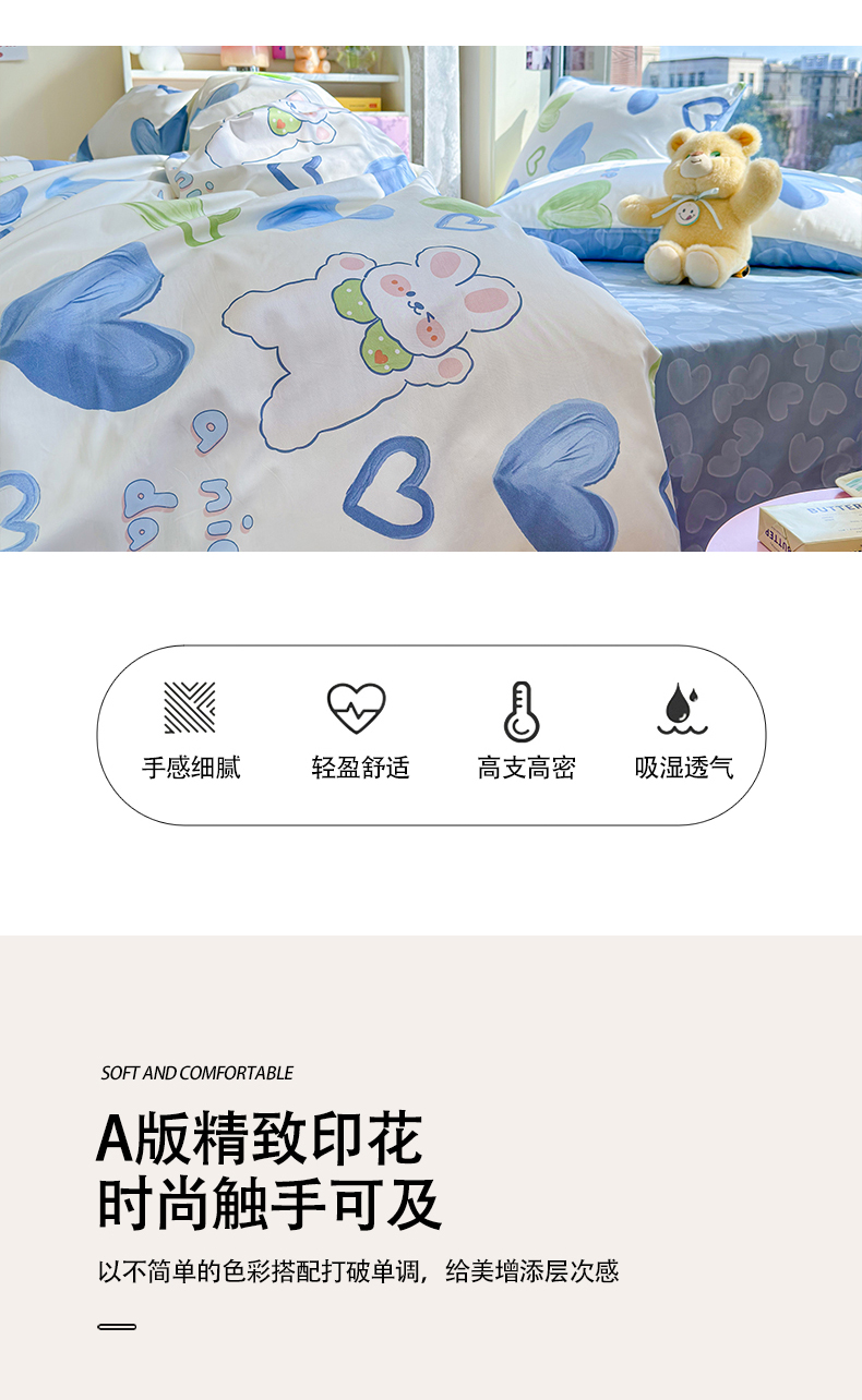 当前位置: 91家纺网 > 商品网购 > 床品套件 > 四件套 > 全棉普通四件套 > 琪格格纺织 2024新款13372全棉印花小清新四件套 爱心兔