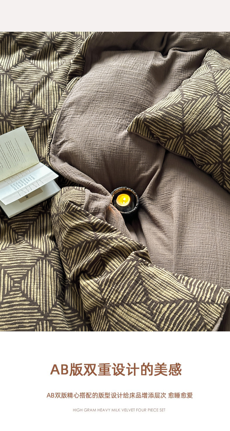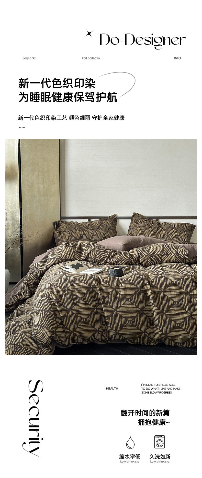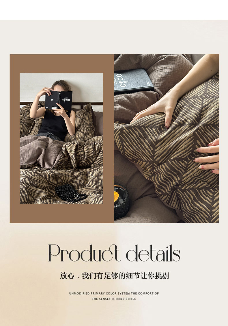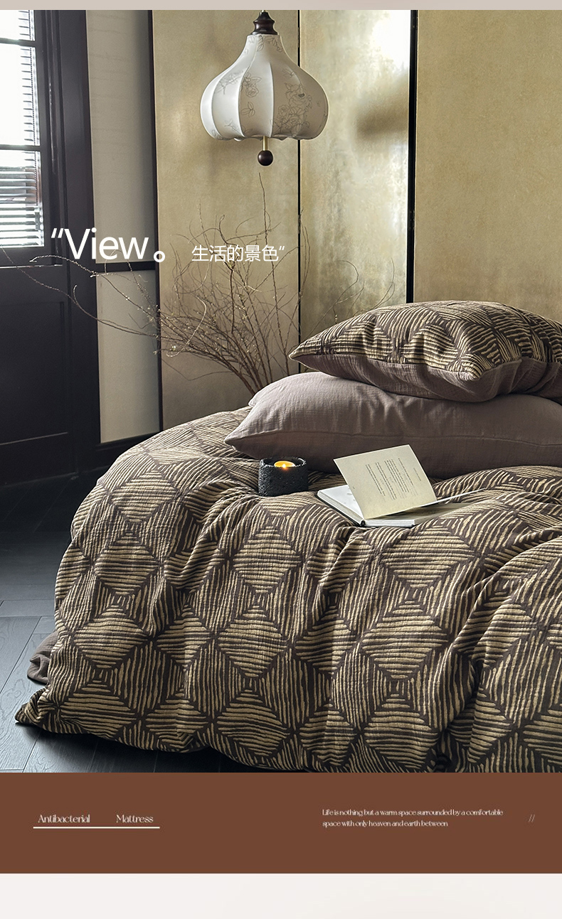 (总)山舍家居 2025新款全棉纯棉特种彩纱针刺子提花四件套-费尔岛的故事-深巧棕,费尔岛的故事-深巧棕