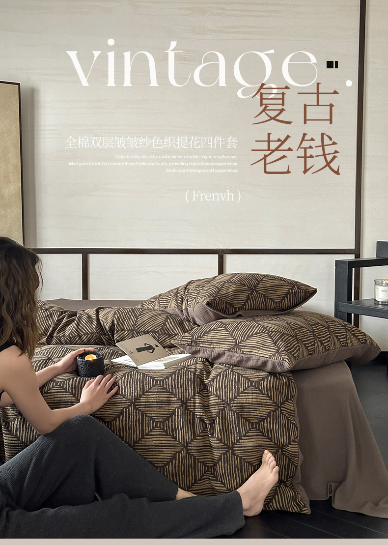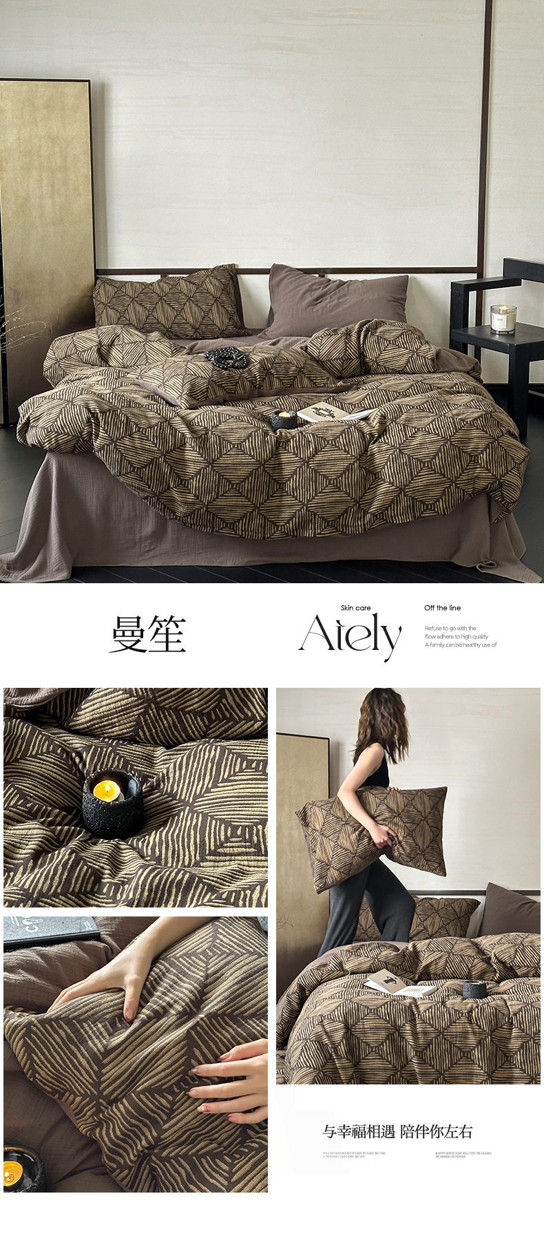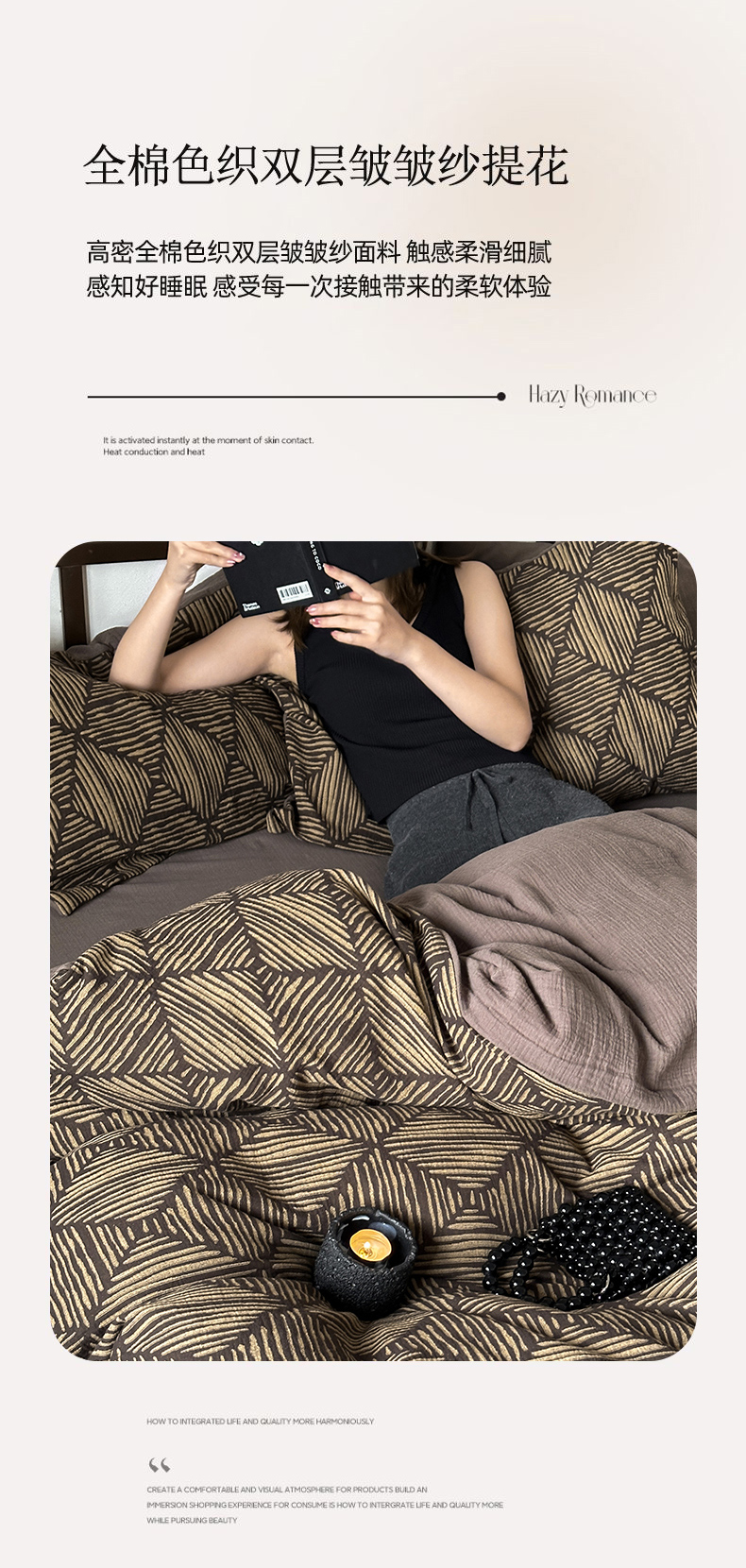 山舍家居 2024新款复古双层皱皱纱色织提花四件套 曼笙