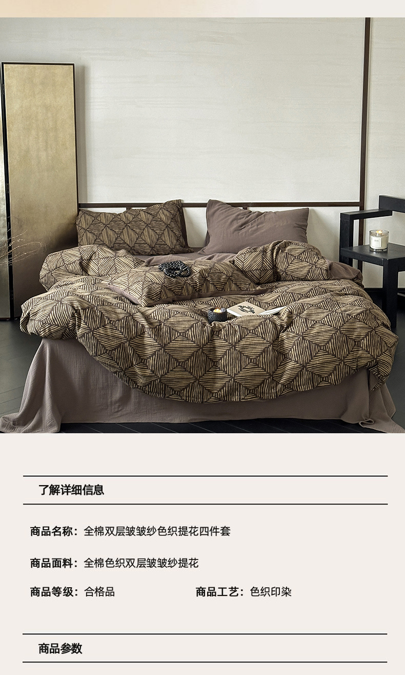 商品名称:山舍家居 2024新款复古双层皱皱纱色织提花四件套 曼笙