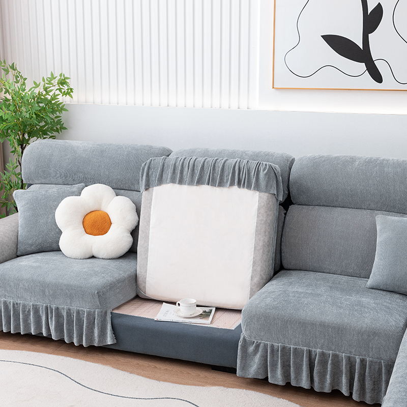 当前位置: 91家纺网 > 商品网购 > 居家布艺 > 坐垫/椅垫/沙发垫 > 沙发垫 > 沐沐 2026新款雪尼尔裙边沙发笠 金属灰