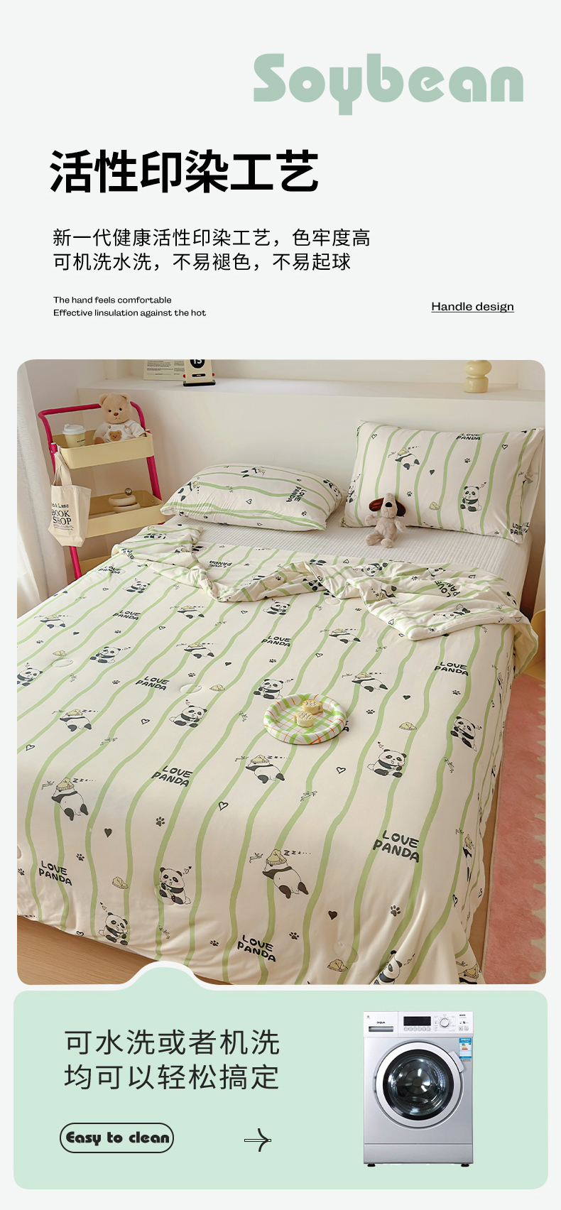 木堇家居 2024新款10%大豆纤维针织棉夏被 竹叶熊猫