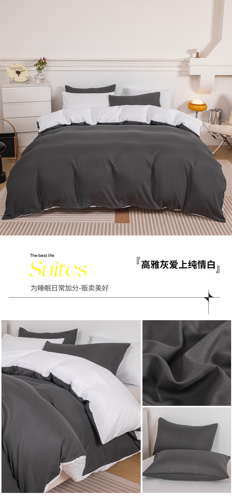 商品名称:莎臣豹 2025新款水洗棉磨毛纯色双拼简约风撞色单品被套 高雅灰爱上纯情白