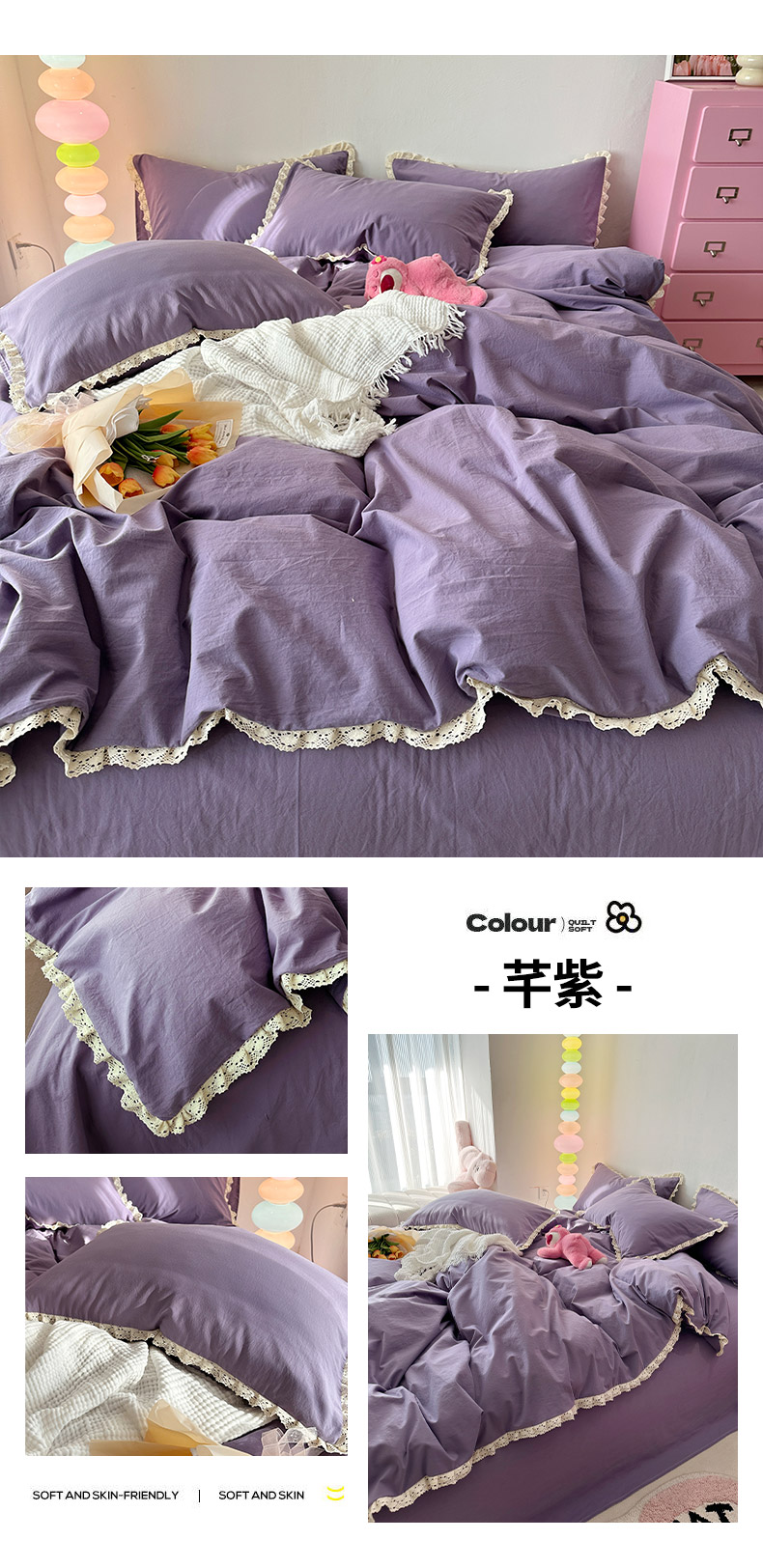 商品名称:千朵 2024新款全棉水洗棉四件套 芊紫