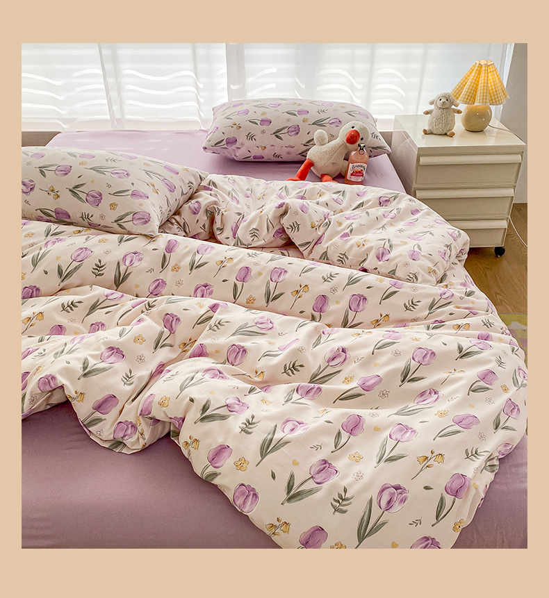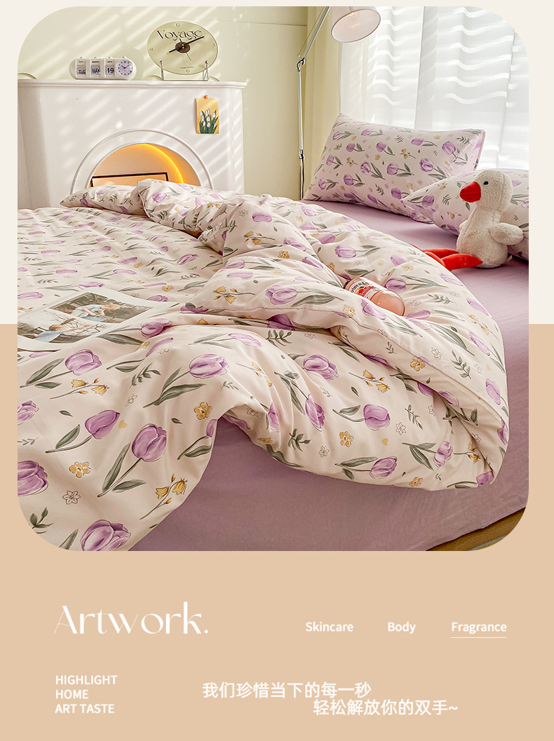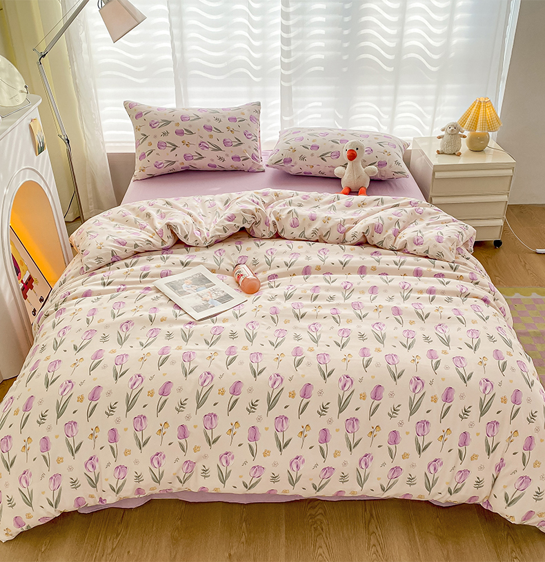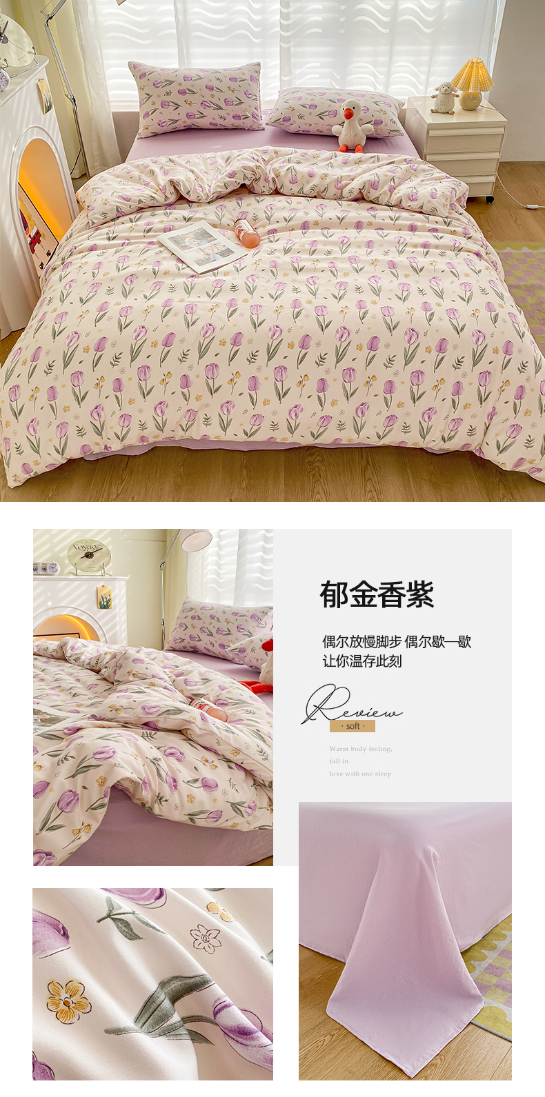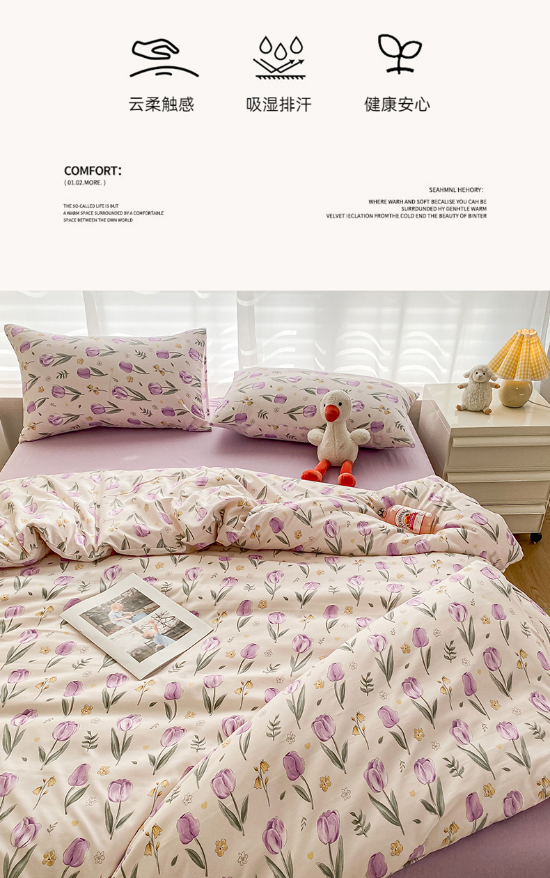 (总)丫丫家纺 2024新款水洗糯小棉卡通小清新单人双人学生单品四件套