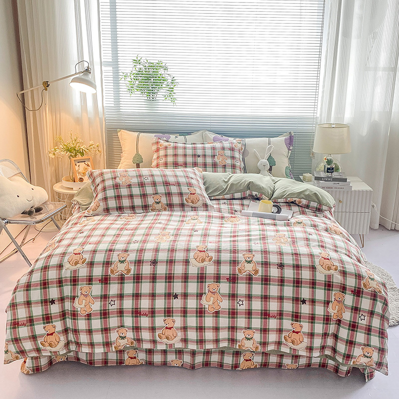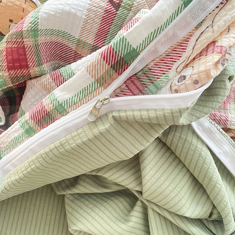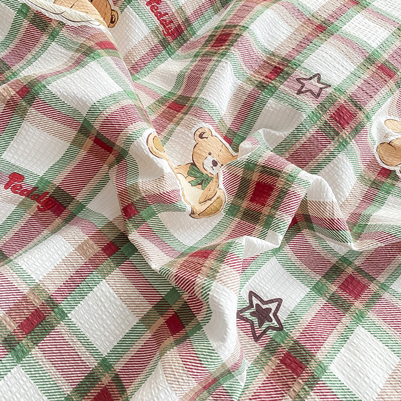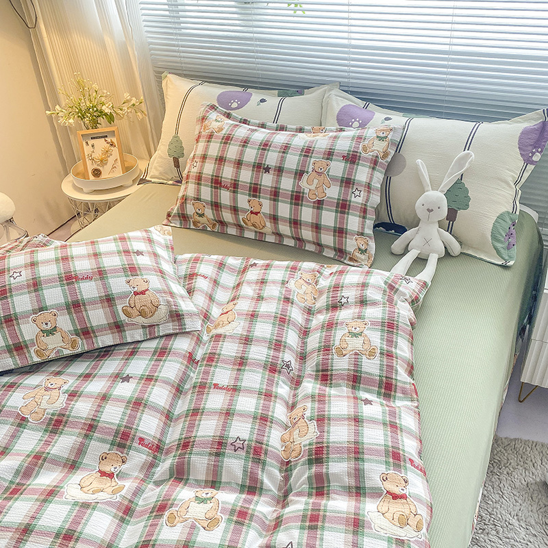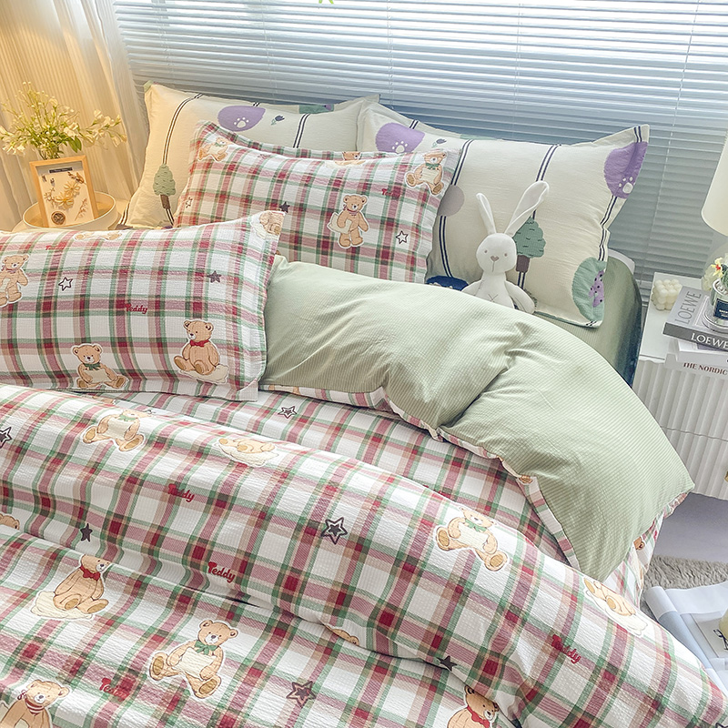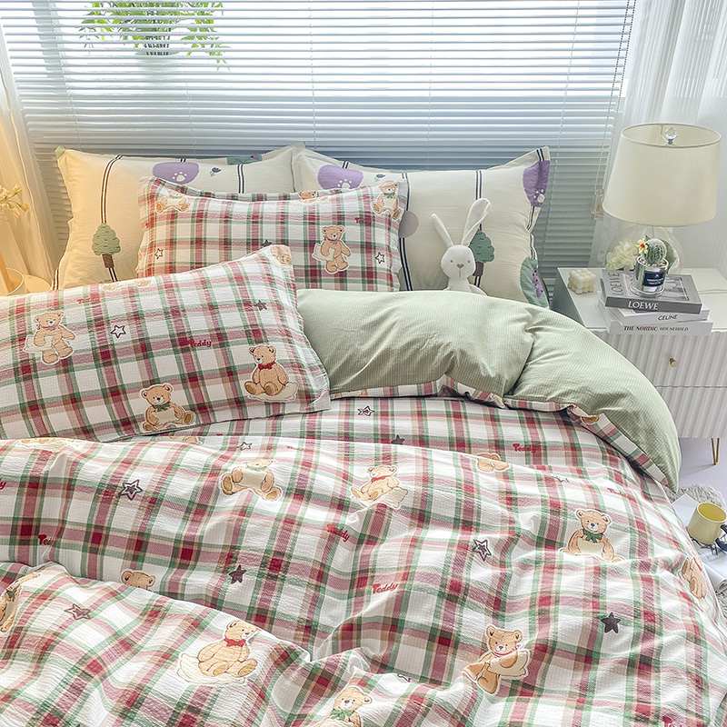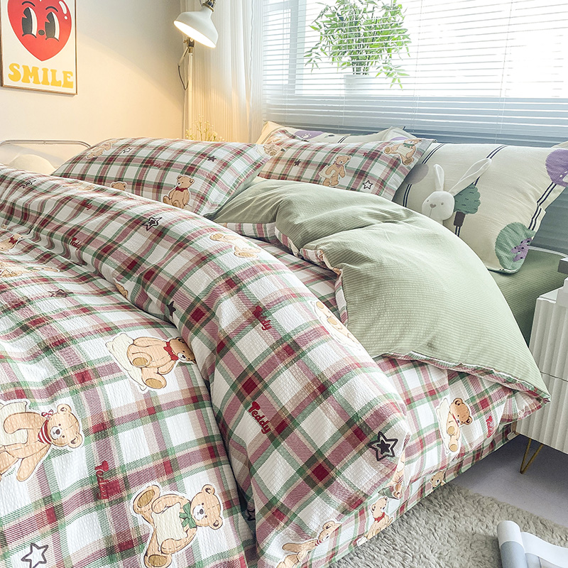 商品名称:寐时代 2024新款A类有氧提花水洗泡泡棉四件套 格子熊