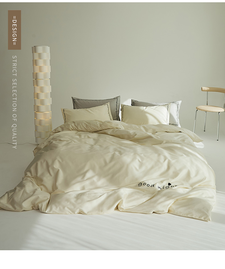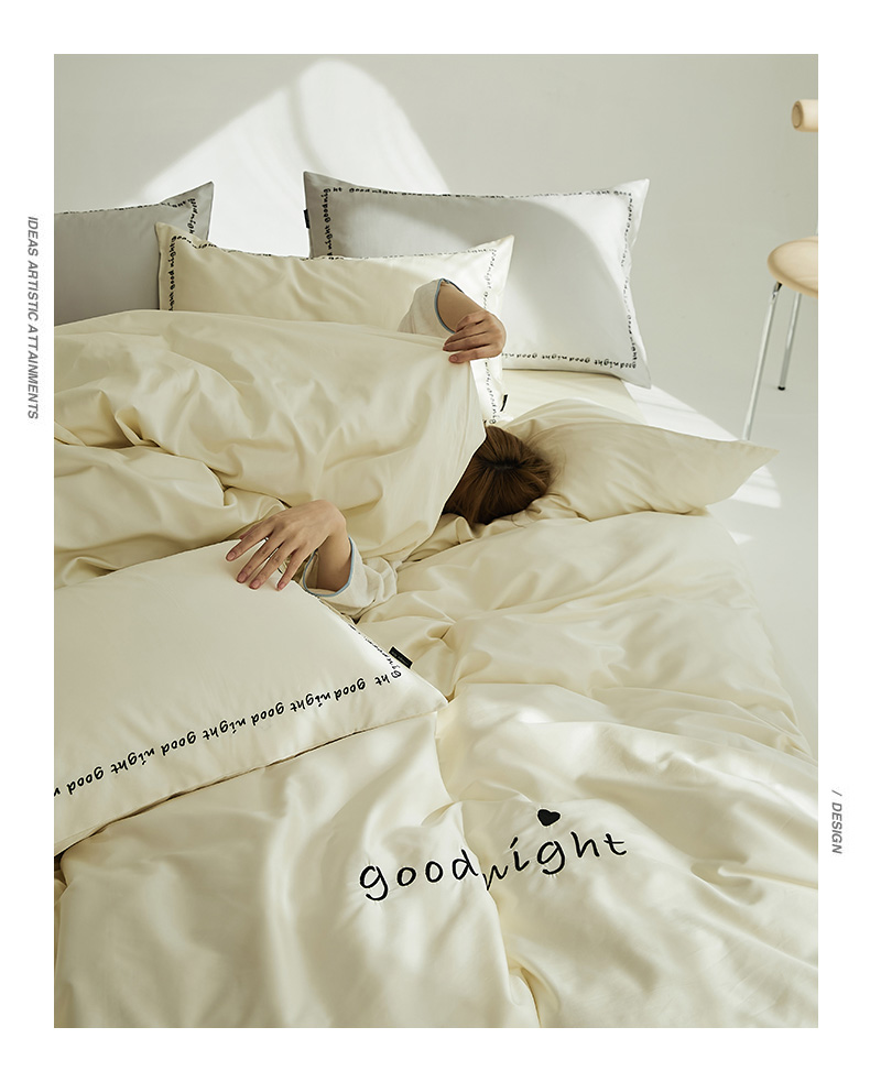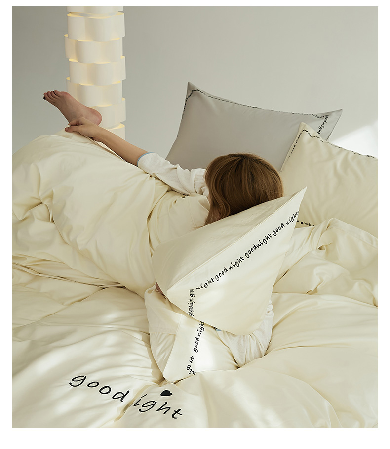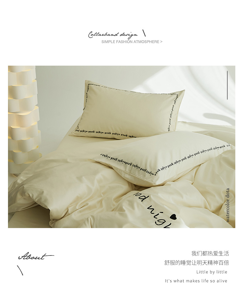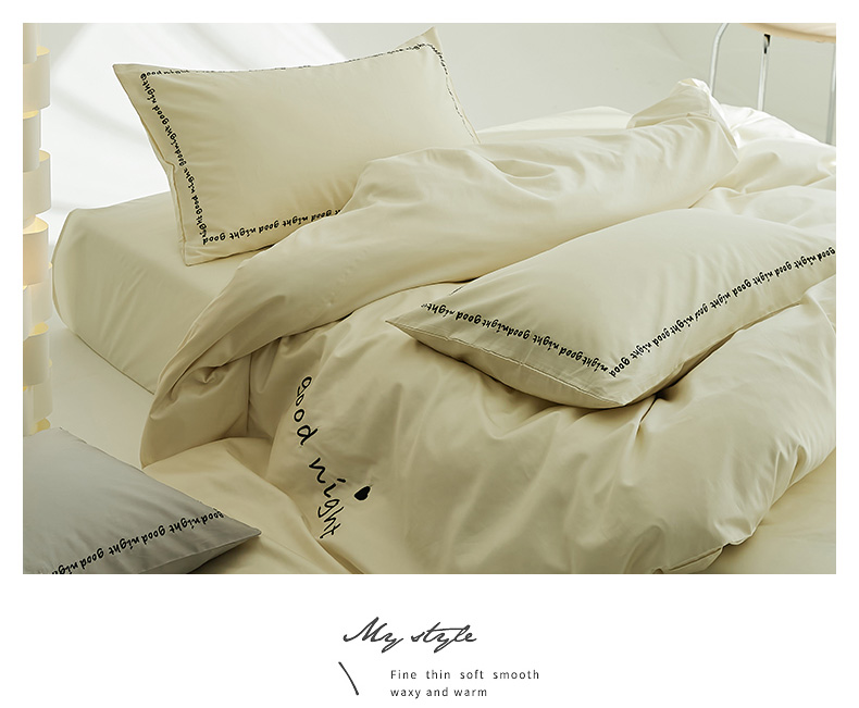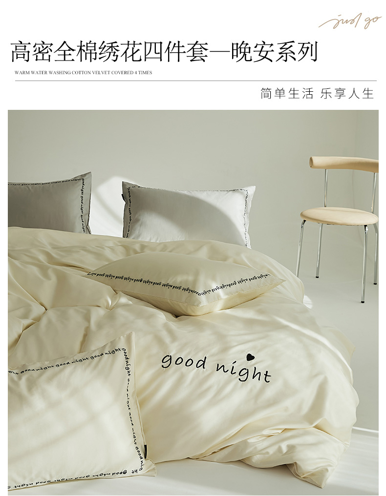 当前位置: 91家纺网 > 商品网购 > 床品套件 > 四件套 > 全棉普通四件套 > 新款高密全棉绣花四件套--晚安系列 常规版 晚安-沐光白