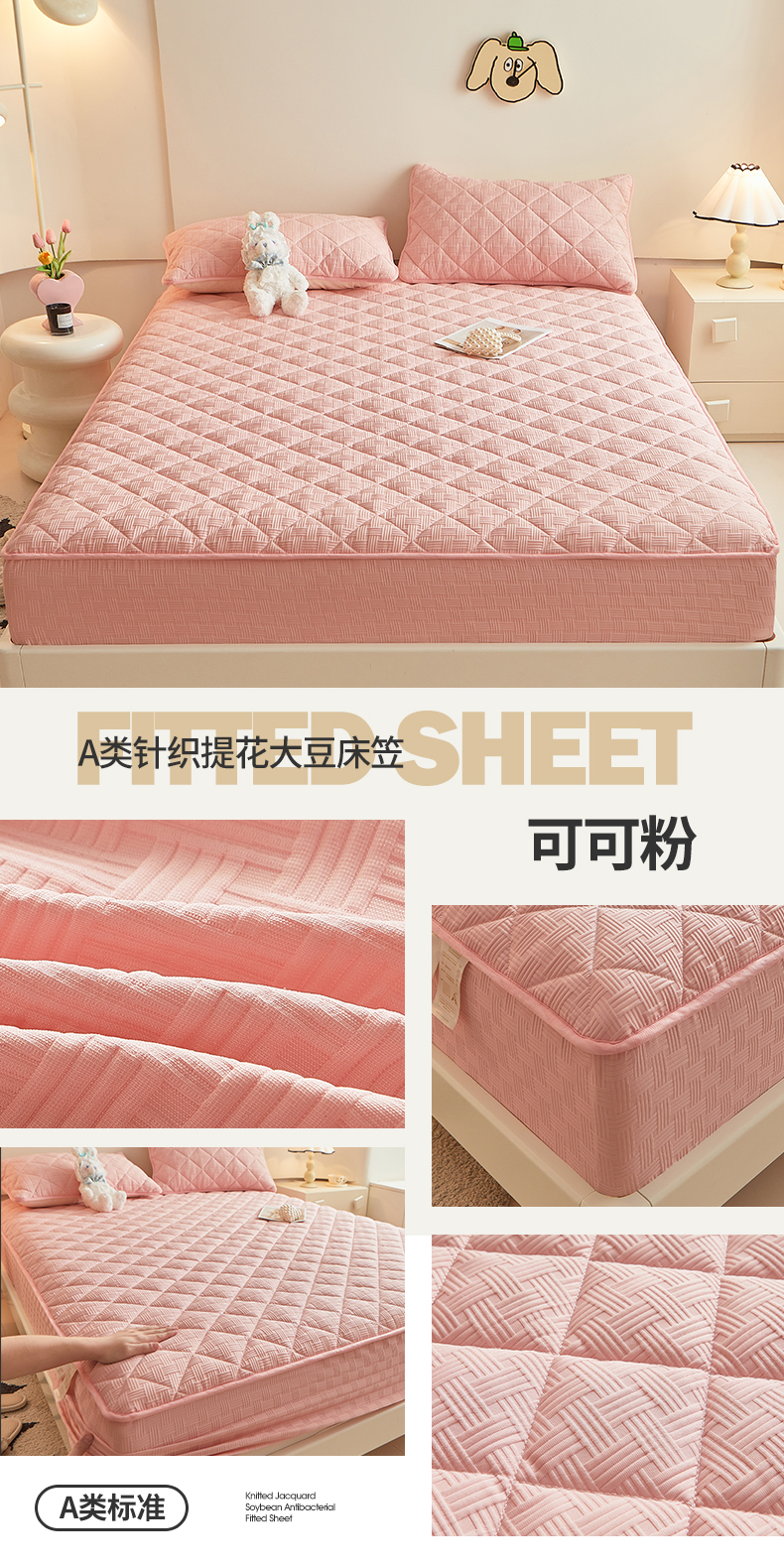 多谷家纺 2024新款针织提花大豆夹棉床笠 可可粉