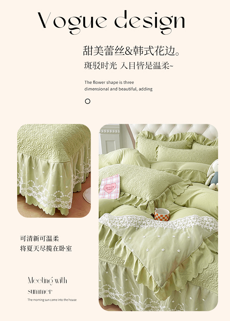 2025春夏新款A类母婴级双层纱棉麻蕾丝花边床盖四件套—安妮系列