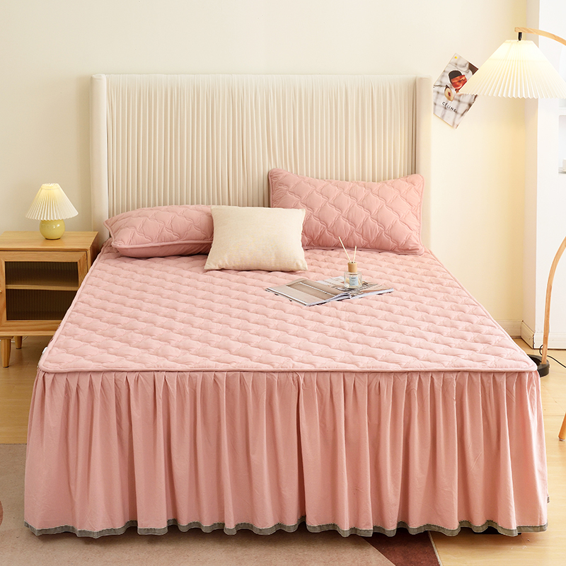 3C 2024新款风车抗菌水洗棉床裙 浅豆沙