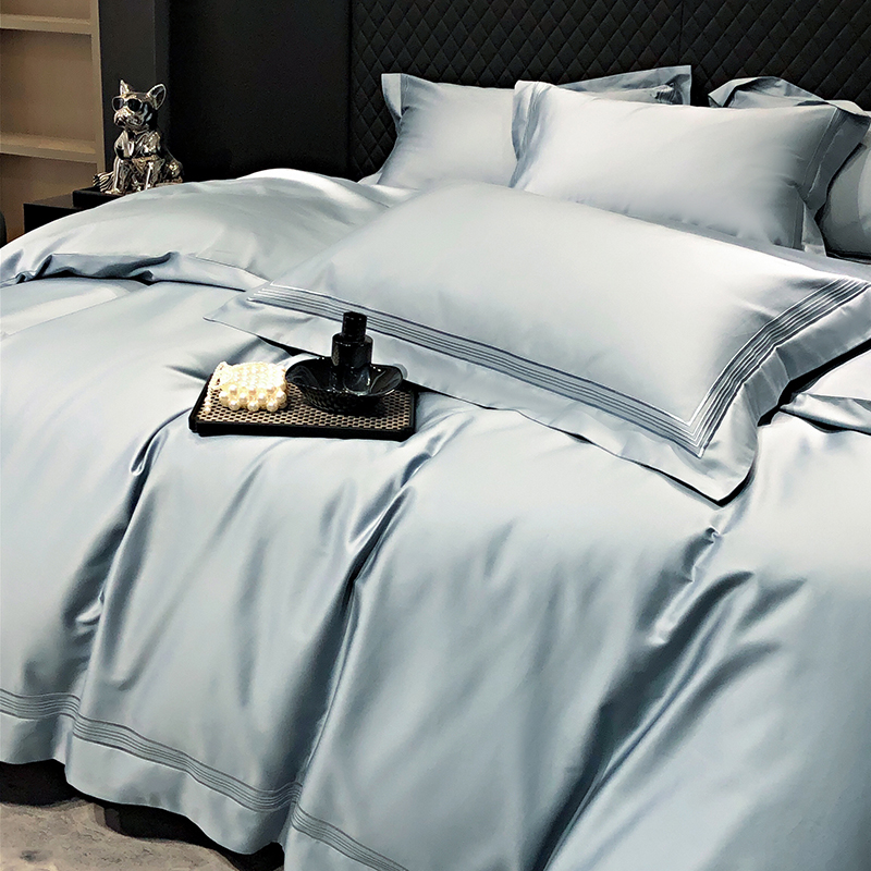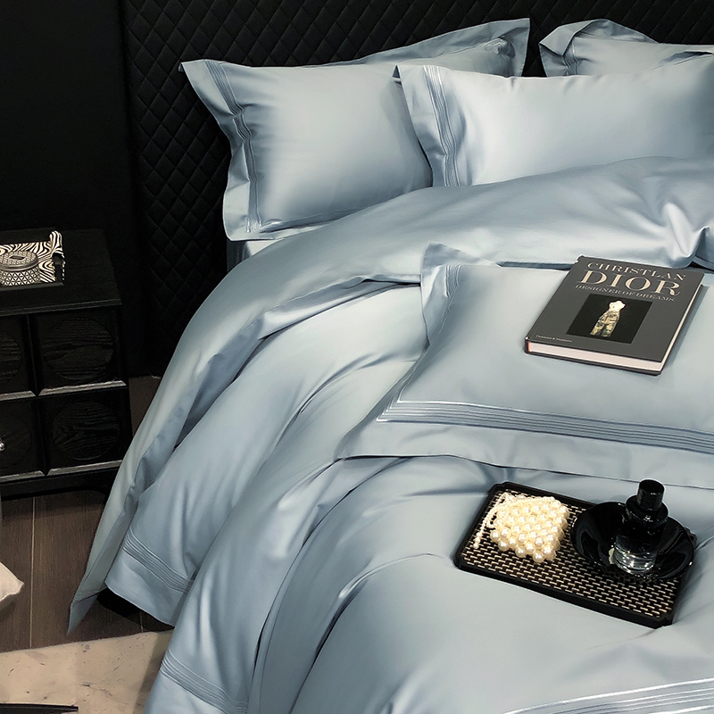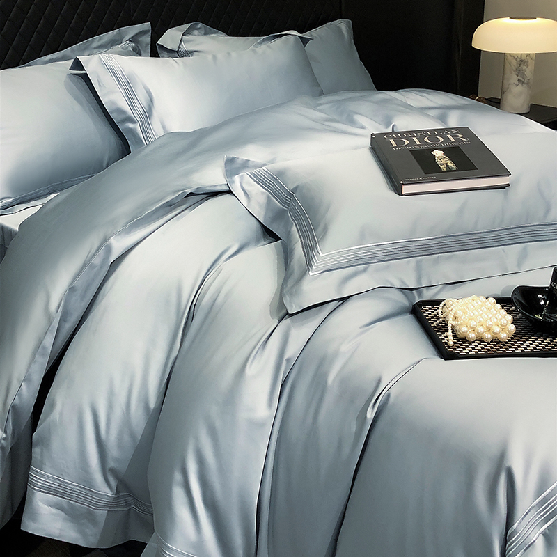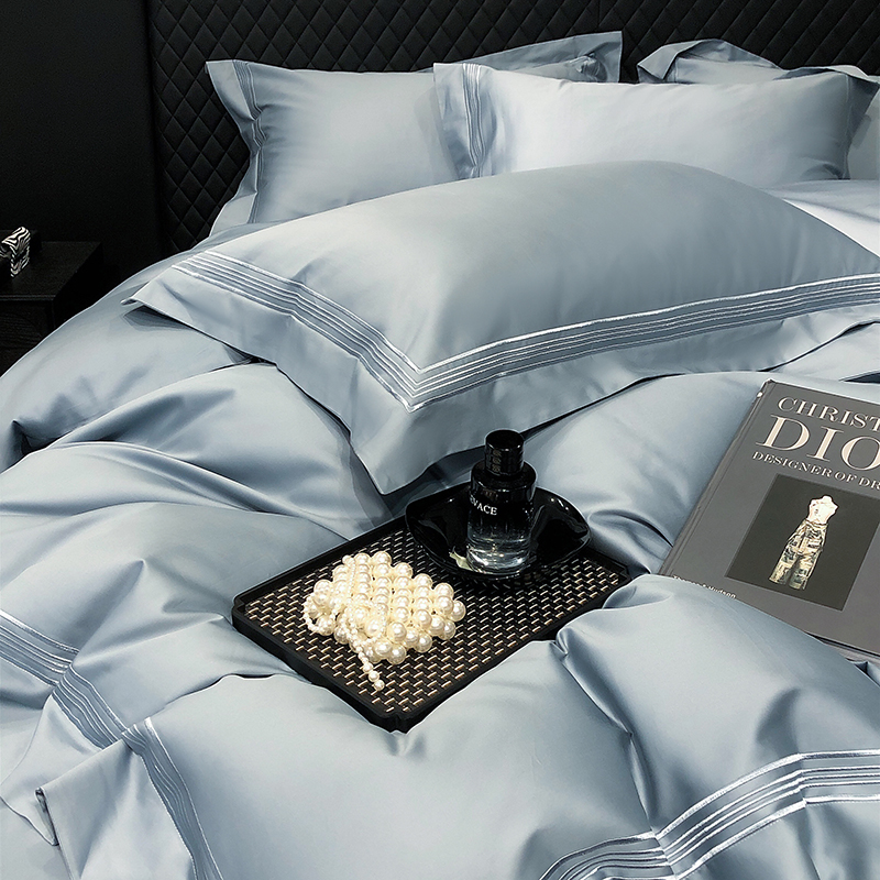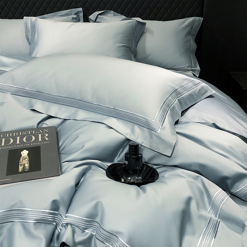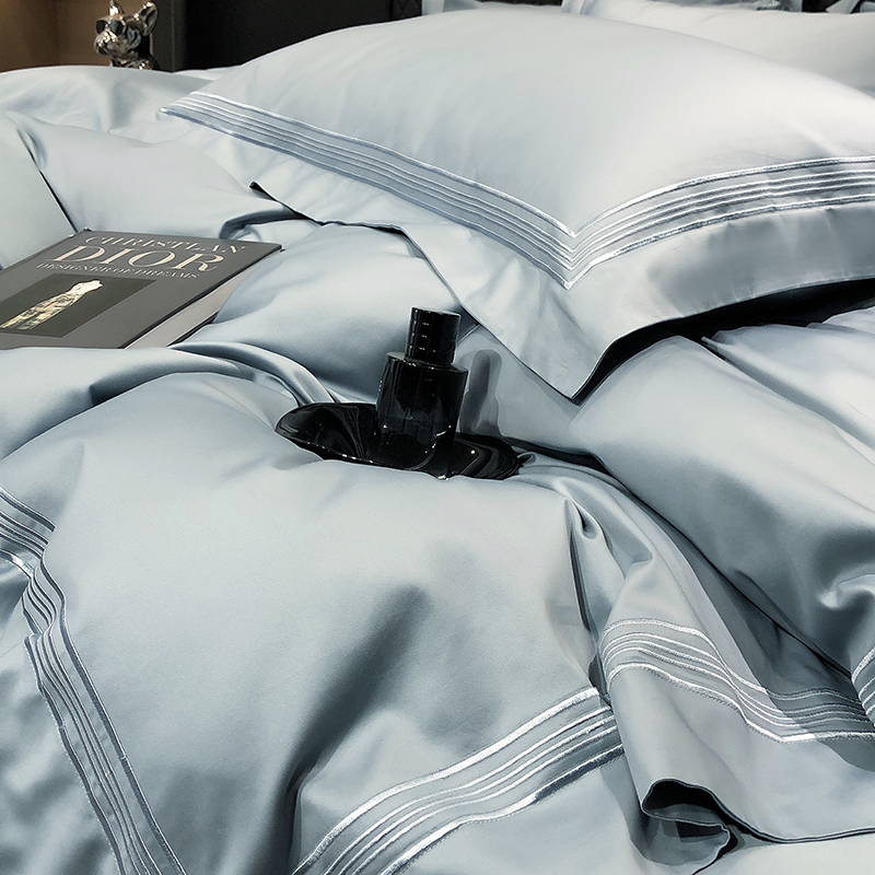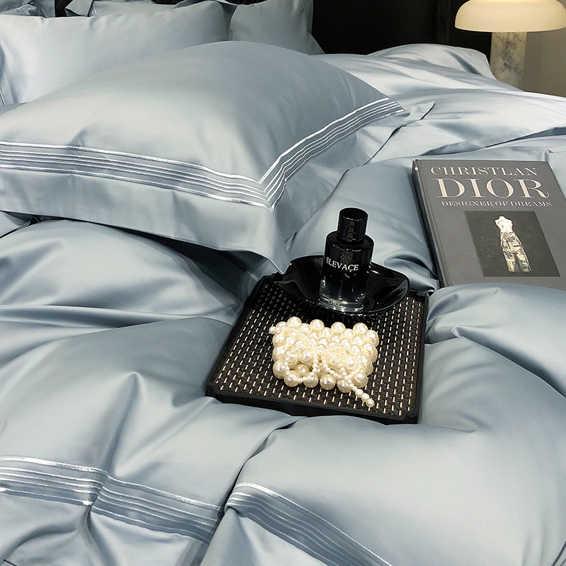 佳汐蓝家纺 2024新款100支长绒棉宽边绣线极简轻奢风四件套--简奢系列 简奢系列-极光蓝