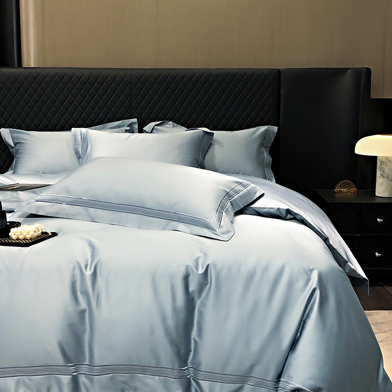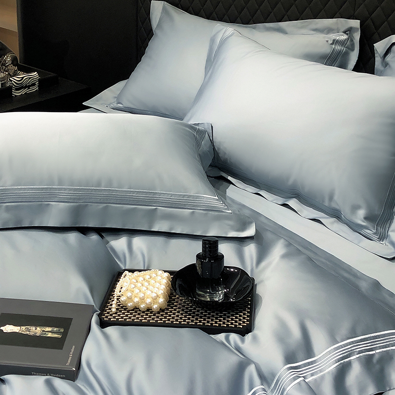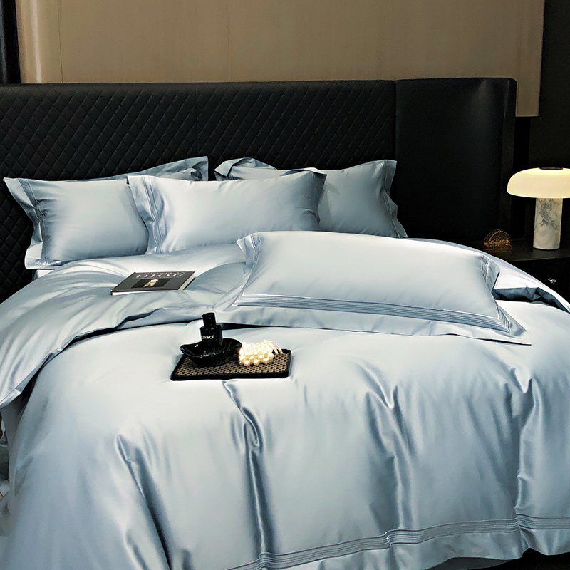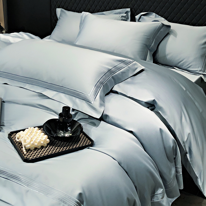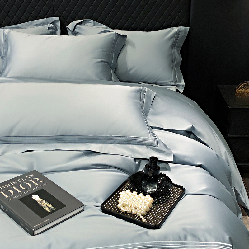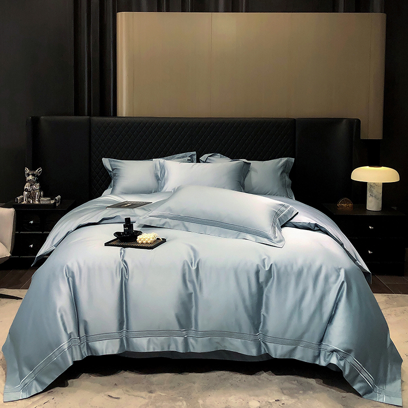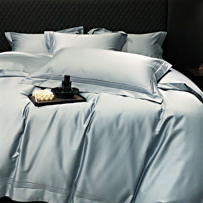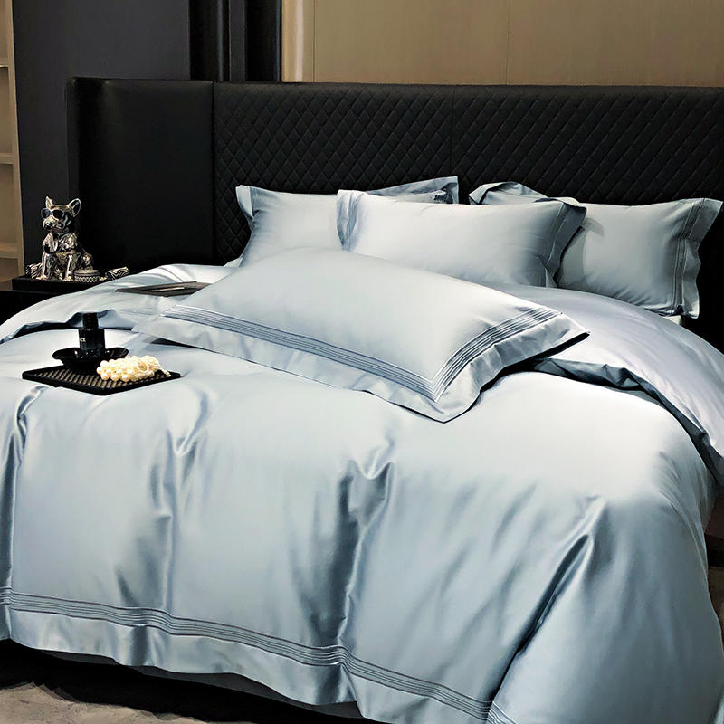佳汐蓝家纺 2024新款100支长绒棉宽边绣线极简轻奢风四件套--简奢系列 简奢系列-极光蓝