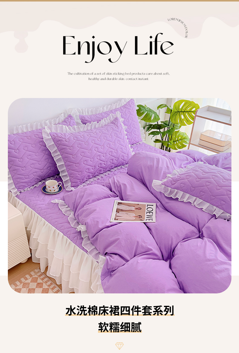 屹成 2024新款水洗棉雪纺丽莎款床裙款四件套 浅紫