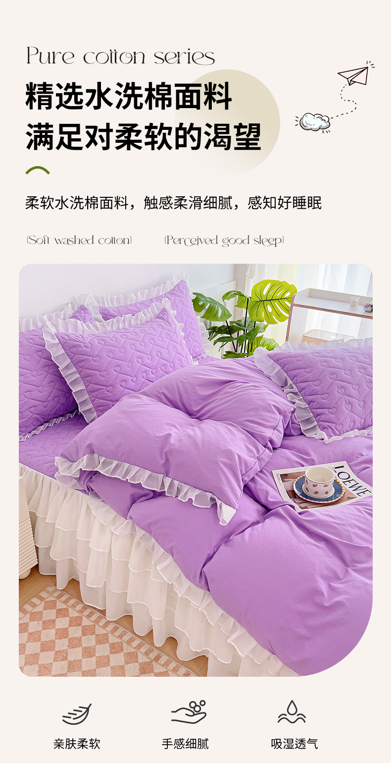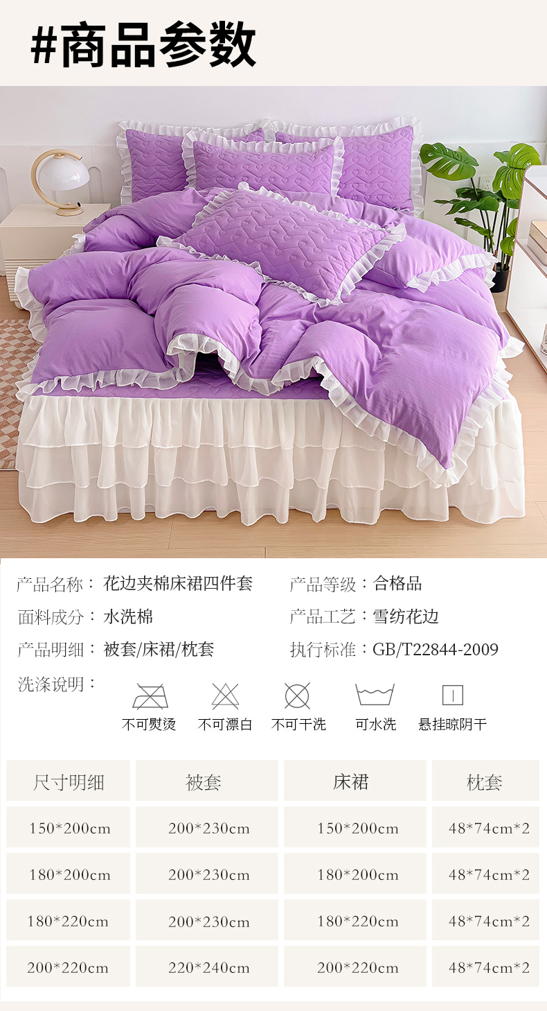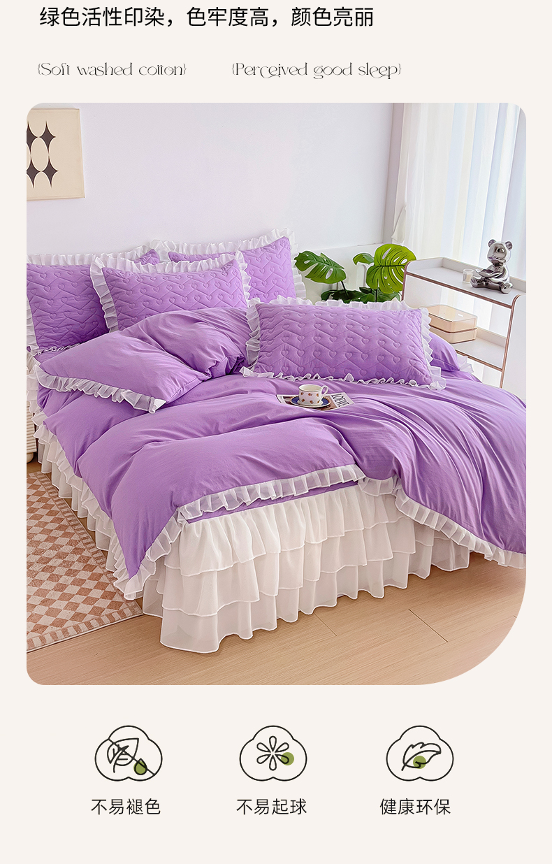 商品名称:屹成 2024新款水洗棉雪纺丽莎款床裙款四件套 浅紫