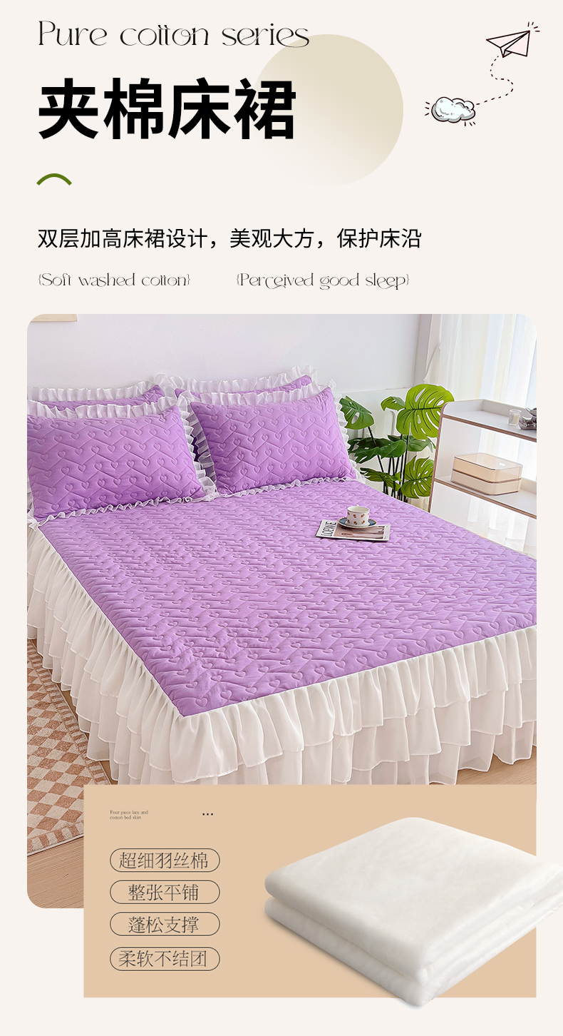 (总)屹成家纺 2024新款天竺棉夹棉床裙四件套,玳瑁紫,典雅驼,豆沙,格调蓝,经典灰,孔雀绿