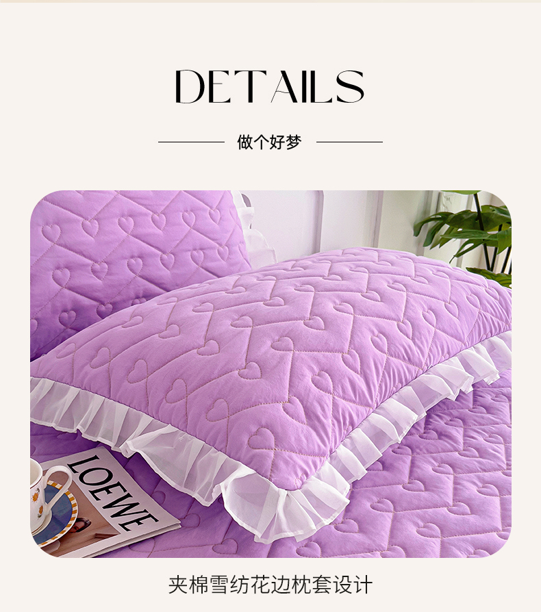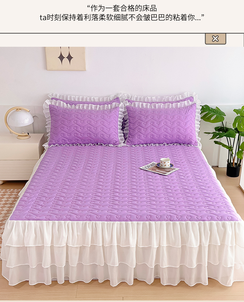 (总)屹成家纺2025新款水晶绒夹棉绗缝蕾丝床裙三件套(塞纳河畔)床裙单件起售价不低于105元,大红,豆沙,翡翠绿,粉玉,橄榄绿,蔚蓝,银灰