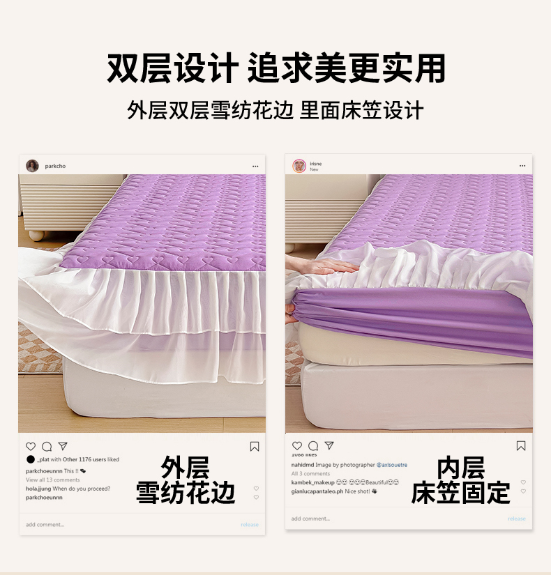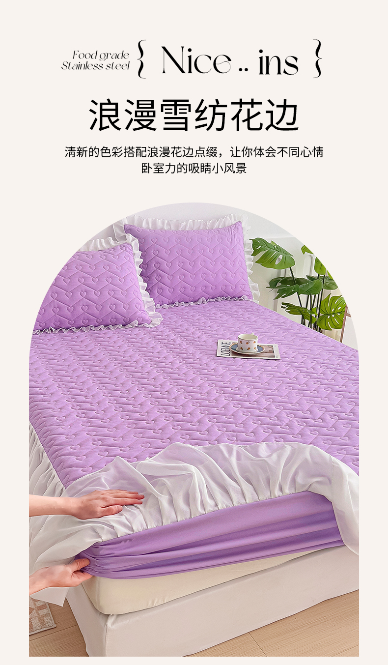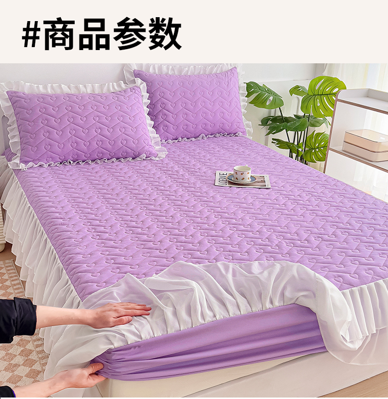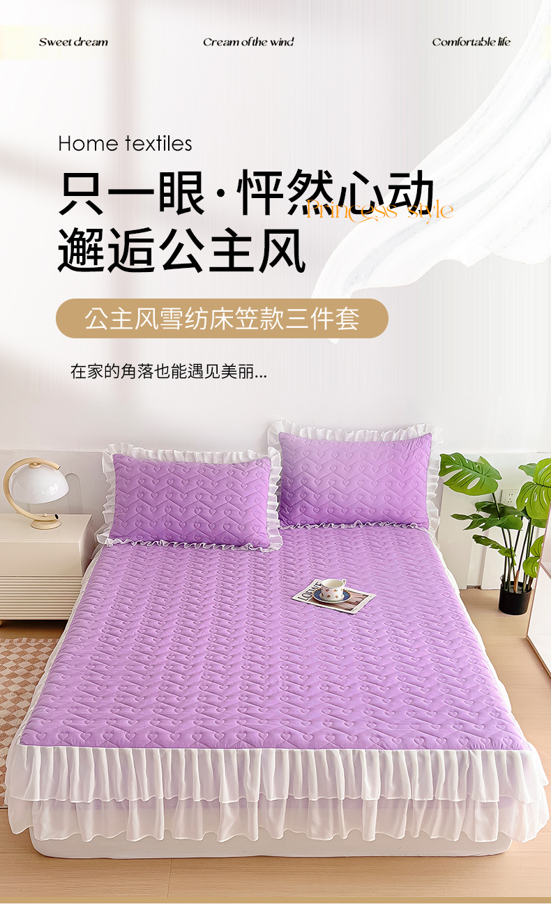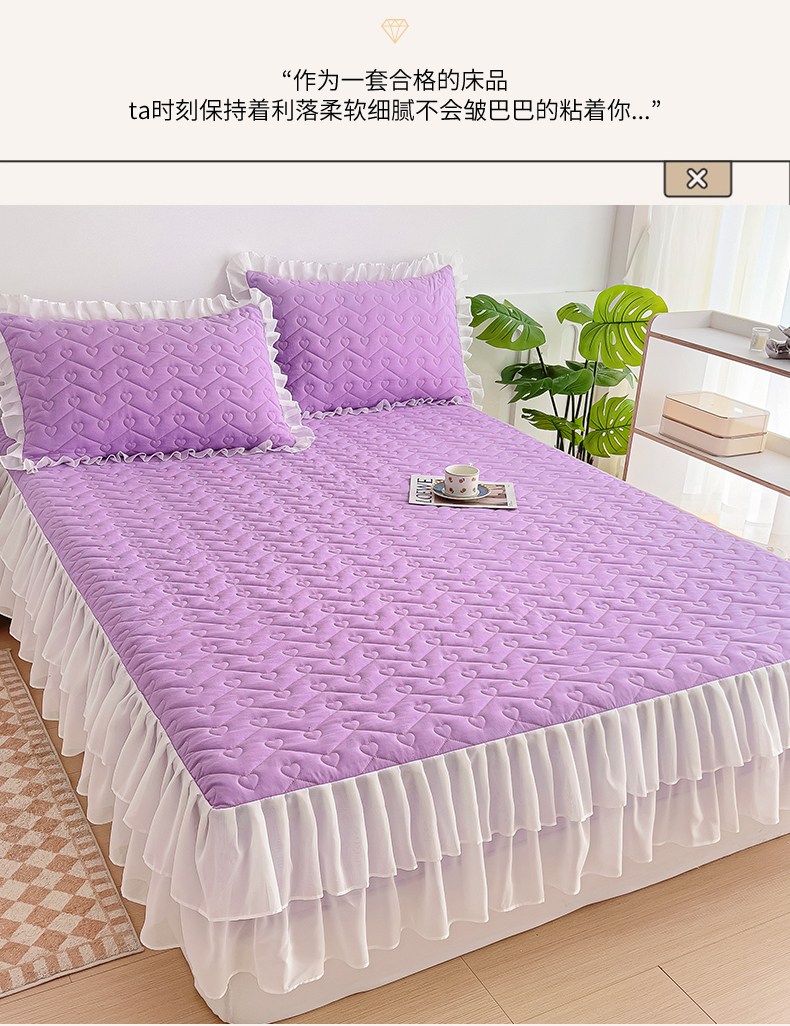 (总)屹成家纺2025新款水晶绒夹棉绗缝蕾丝床裙三件套(塞纳河畔)床裙单件起售价不低于105元,大红,豆沙,翡翠绿,粉玉,橄榄绿,蔚蓝,银灰