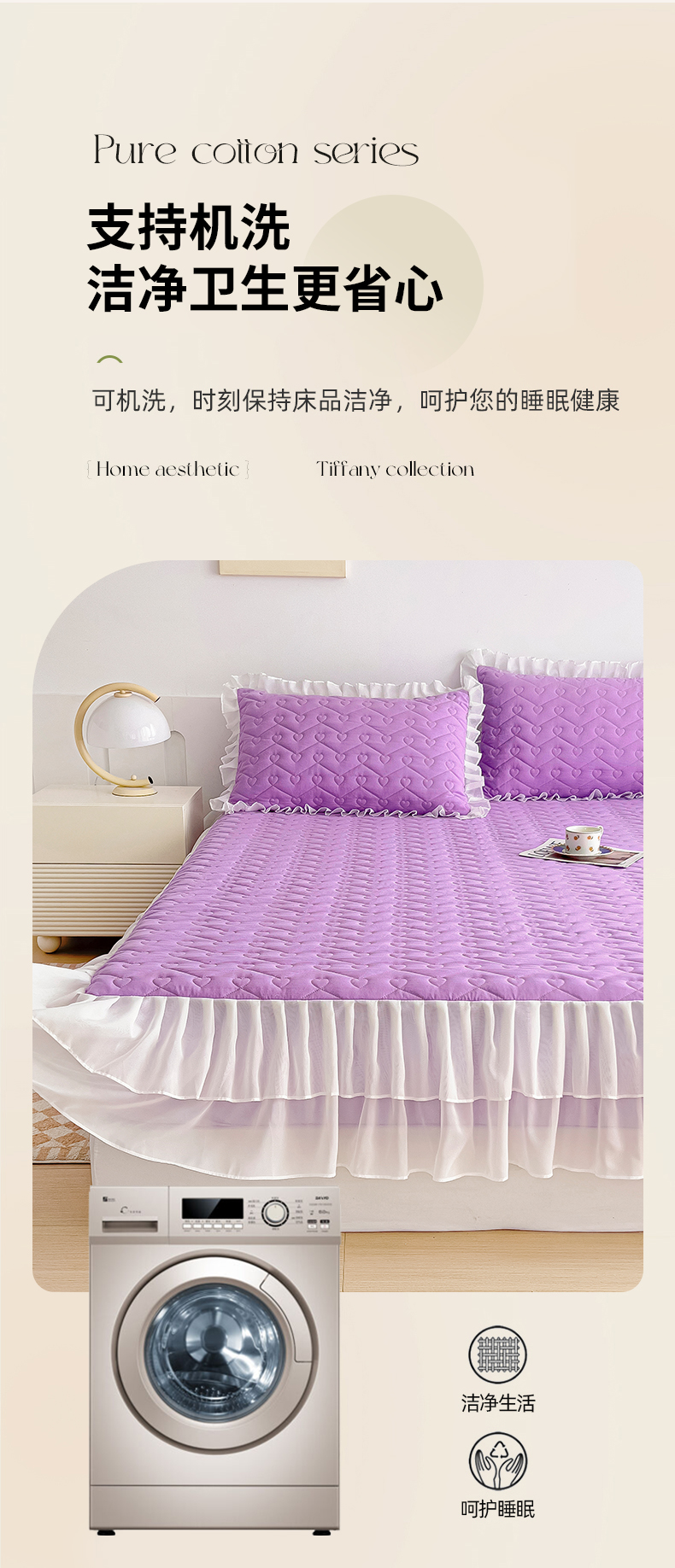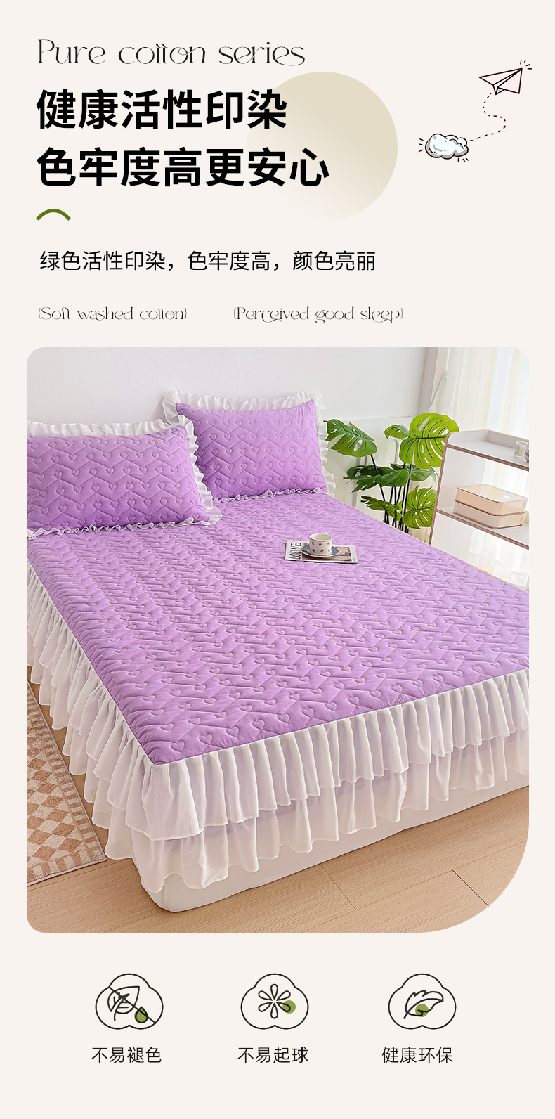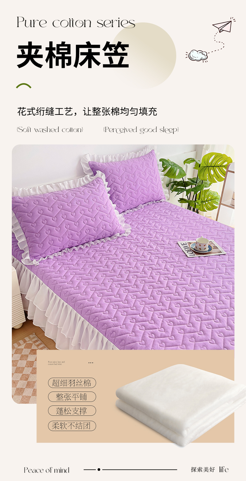 商品名称:屹成 2024新款水洗棉雪纺丽莎款单床笠 浅紫