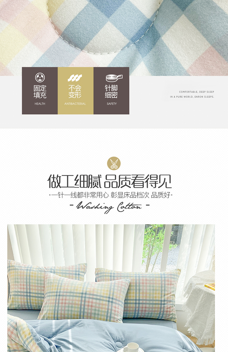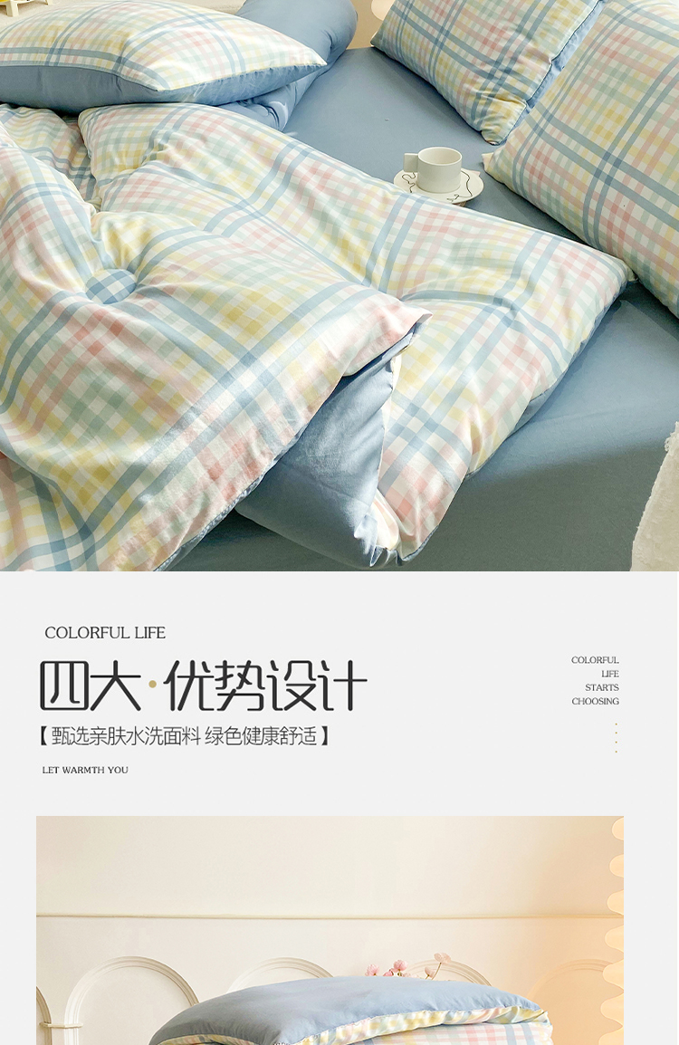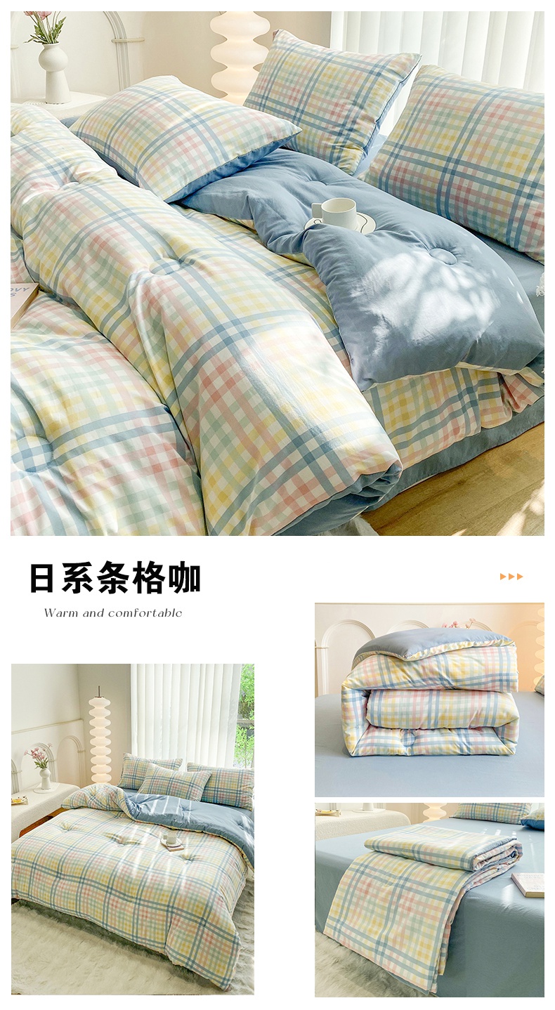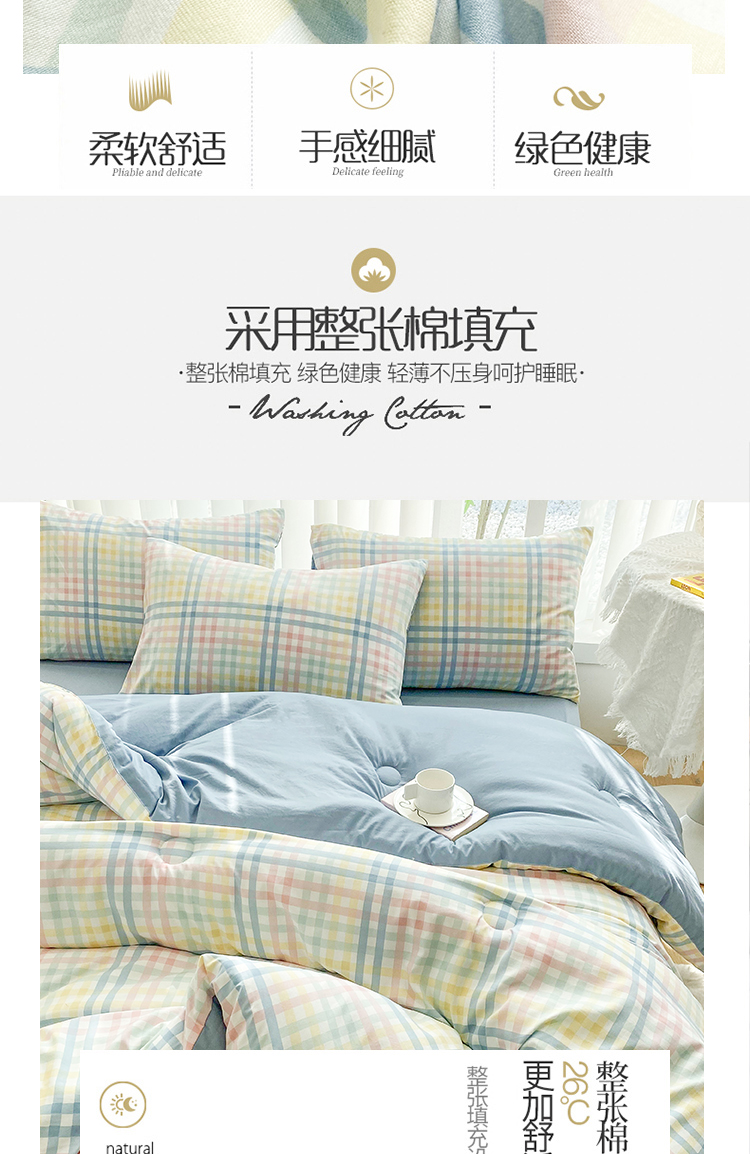 当前位置: 91家纺网 > 商品网购 > 床品套件 > 四件套 > 夏被四件套 > 啊雅家居 2025新款水洗棉条纹印花夏被冬被四件套-床单款 冬被 日系小格绿