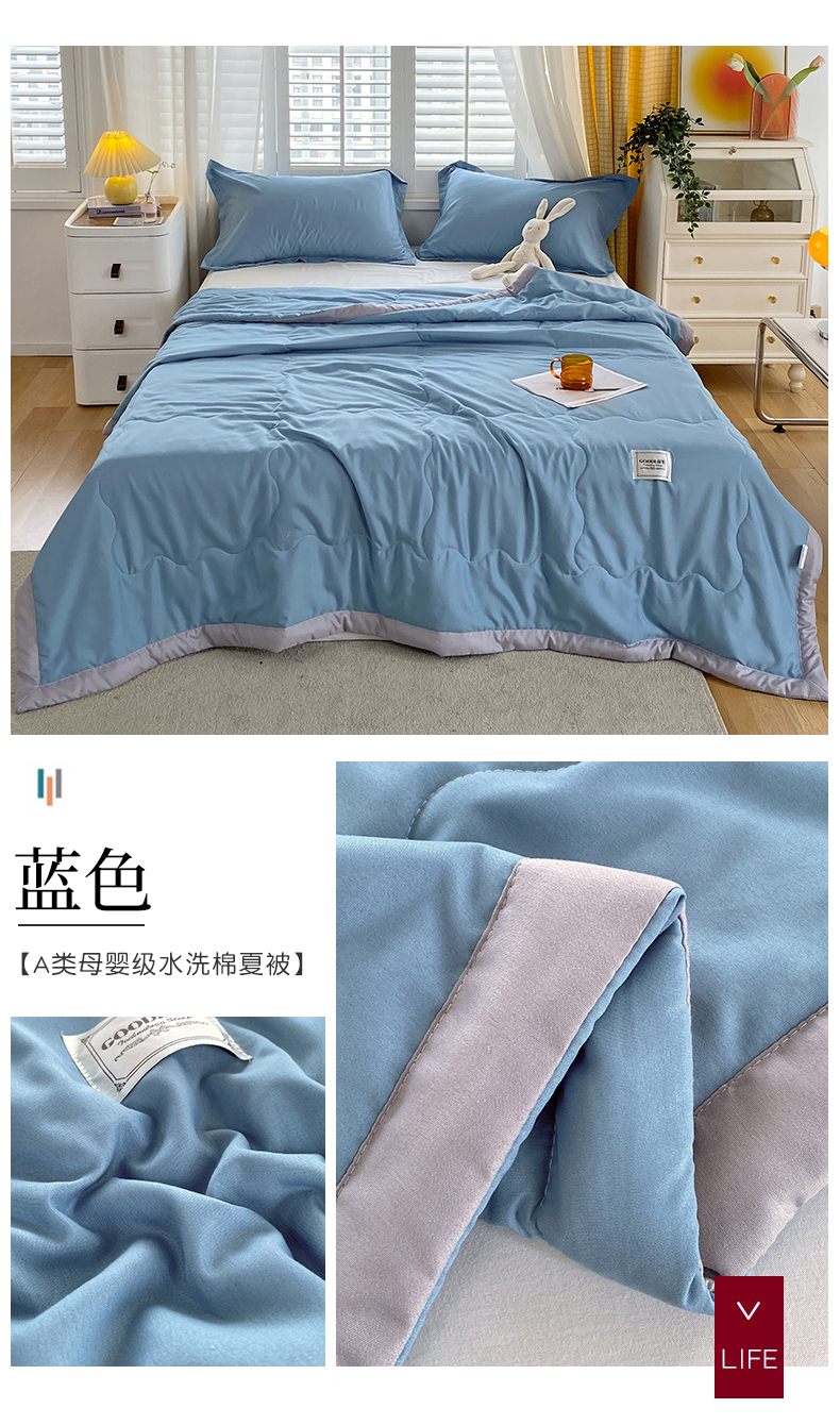 商品名称:兄弟坊 2025新款日式良品水洗棉夏被 蓝色