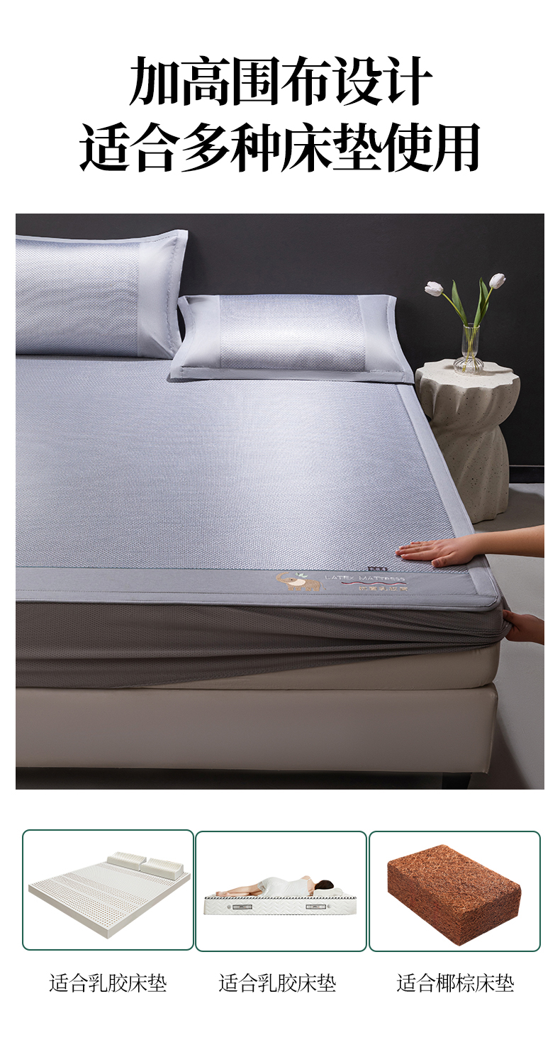 商品名称:(总)宜派家纺 2025年夏季新款凉席冰丝席藤席席抗菌席床笠款凉感席童席竹席