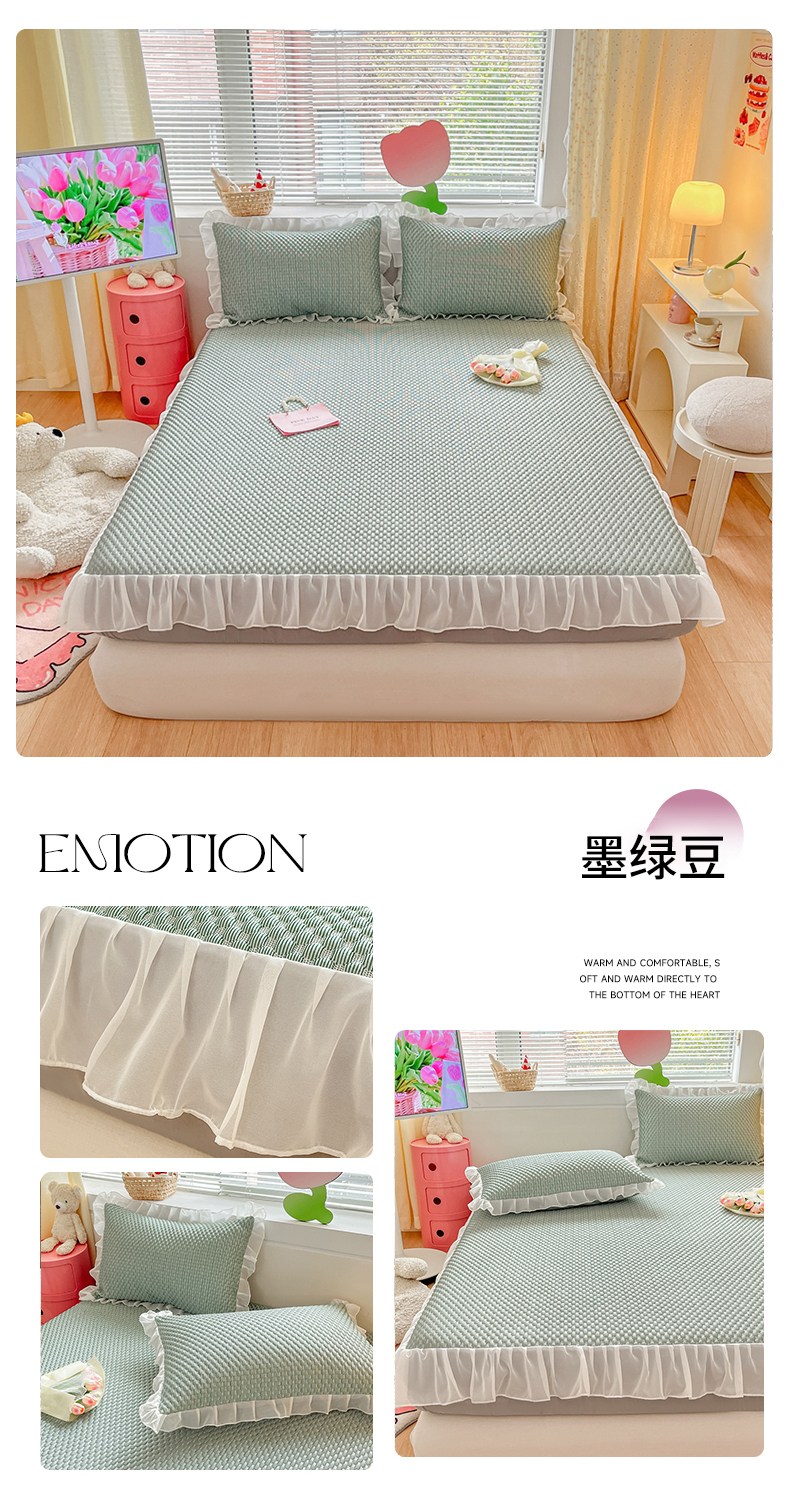 吉祥家纺 2024新款直播爆款凉感冰豆豆床笠款凉席 墨绿豆