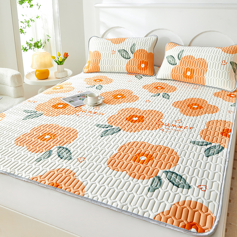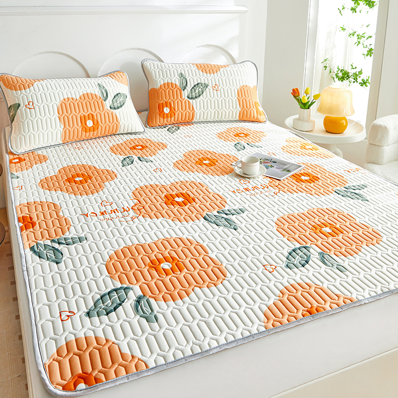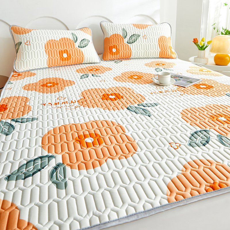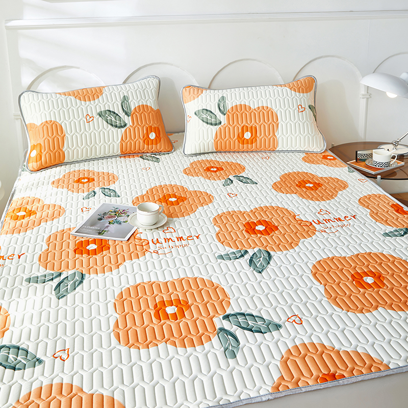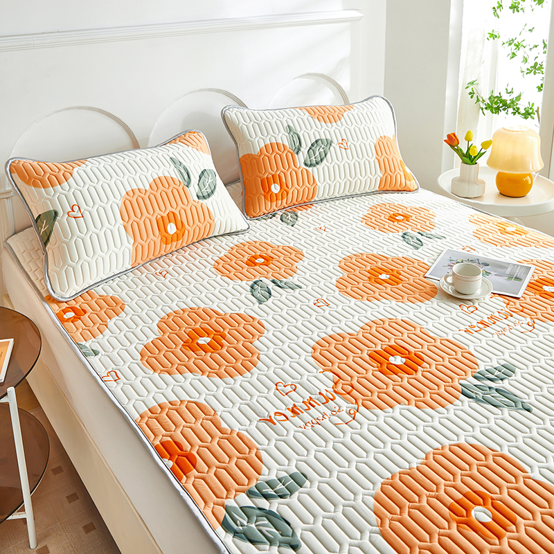 爱上家居 2024新款印花凉席床裙床单款夏被-床单款 橙色花朵