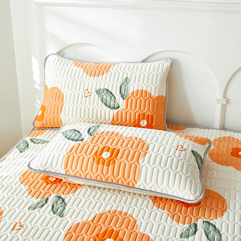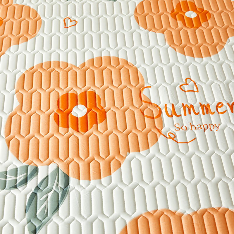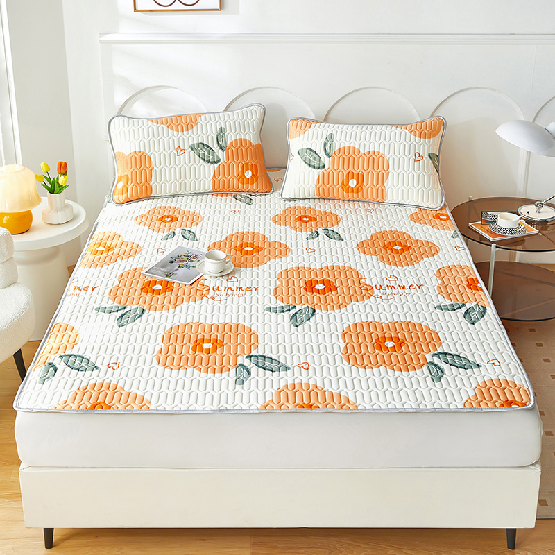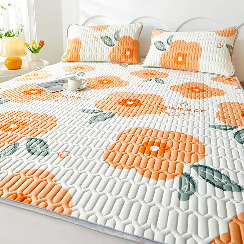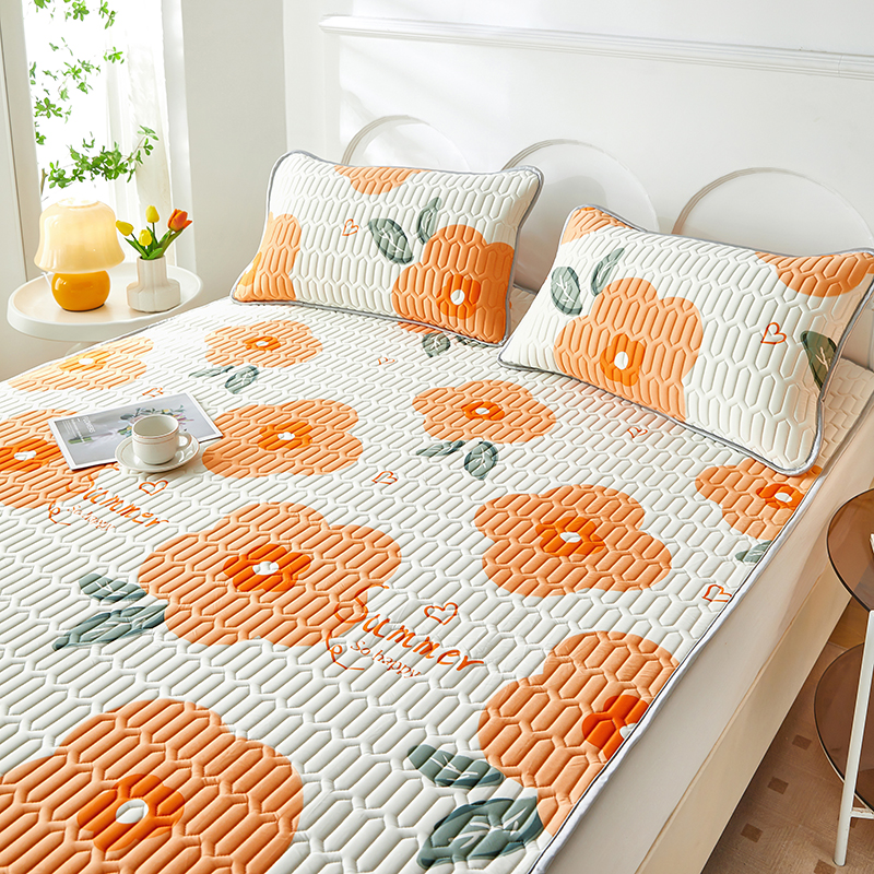 爱上家居 2024新款印花凉席床裙床单款夏被-床单款 橙色花朵