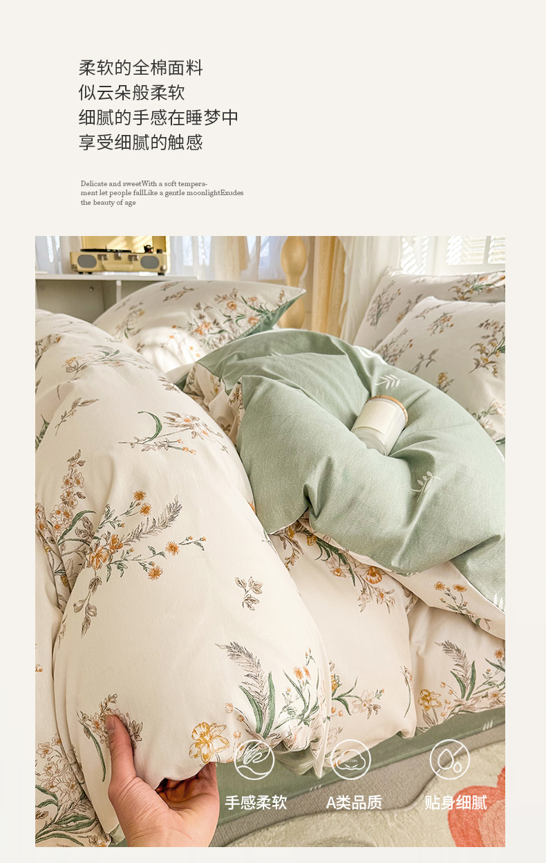 商品名称:晨希家居 2024新款小清新全棉印花四件套 微米