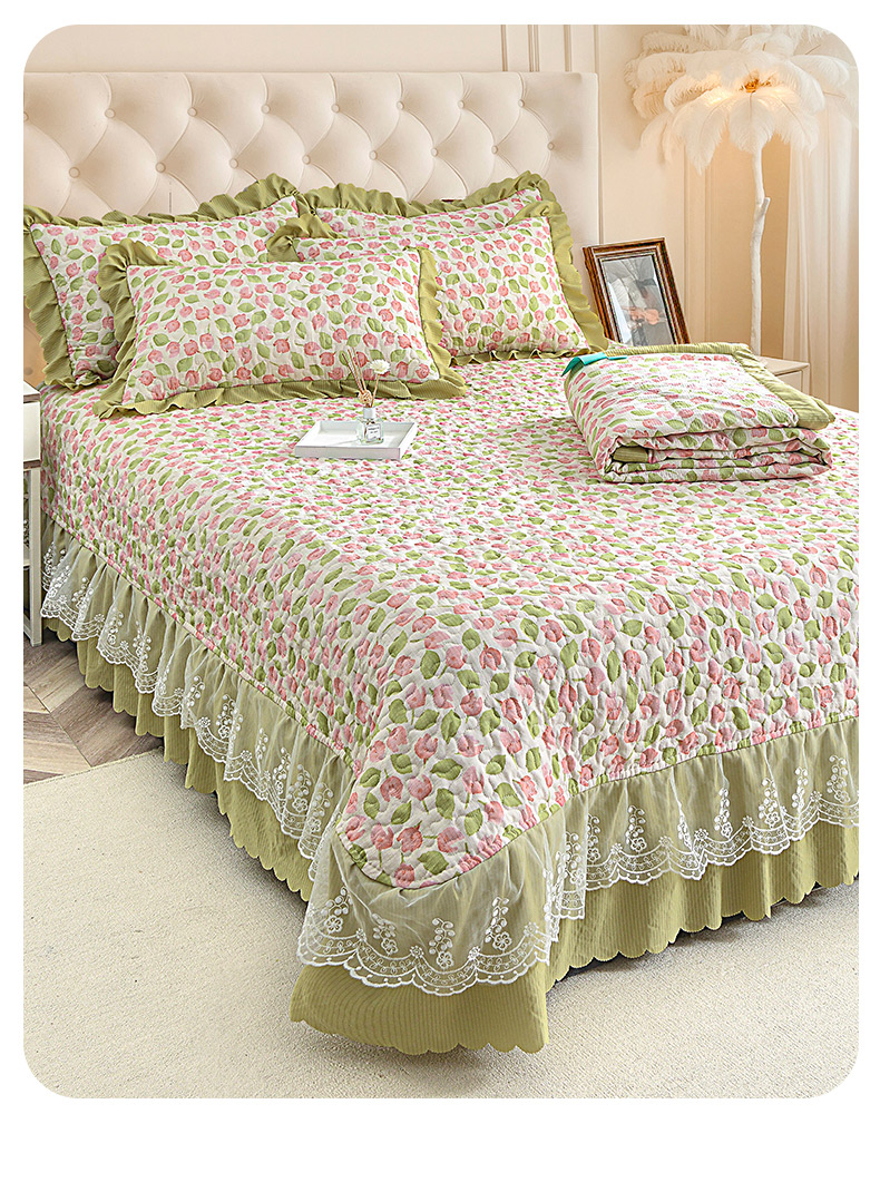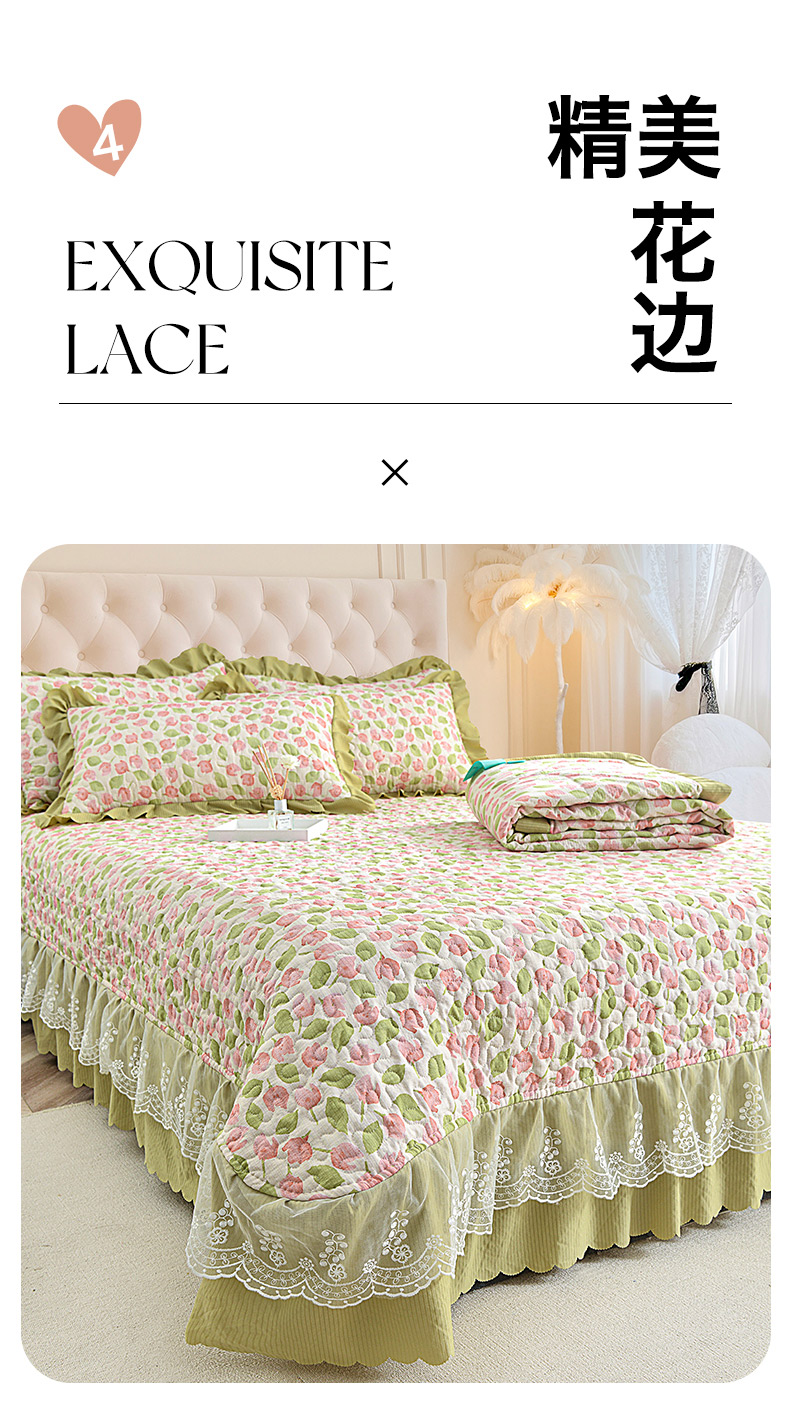 (总)梦柏家纺 2025新款韩式牛奶绒刺绣花边床盖四件套,风信紫,湖水蓝,浅草绿,蔷薇粉,樱花粉,月光白