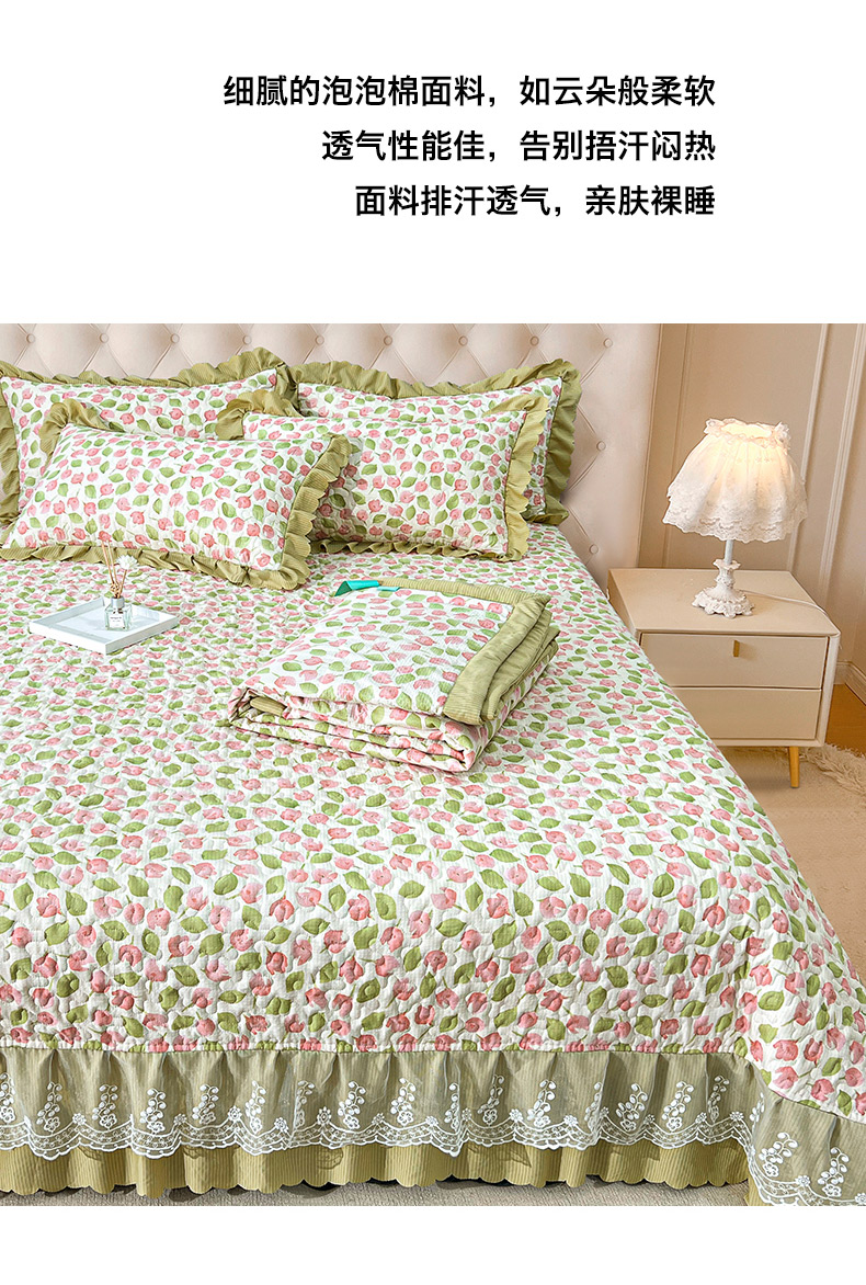 梦柏家纺 2024新款亲肤泡泡棉夹棉床盖夏被四件套 花舞