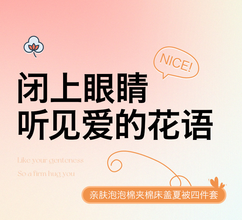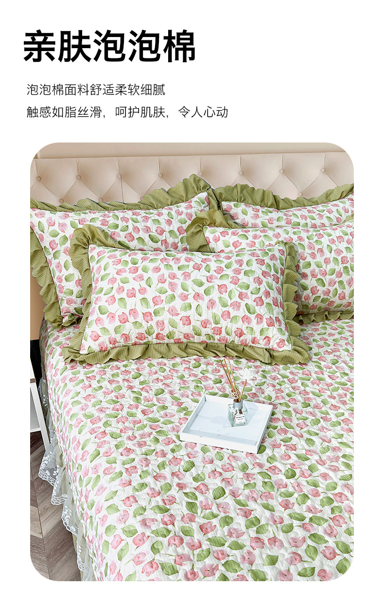 商品名称:梦柏家纺 2024新款亲肤泡泡棉夹棉床盖夏被四件套 花舞