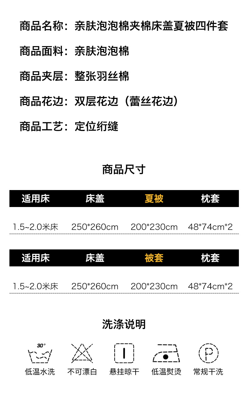 250X260cm夏被四件套