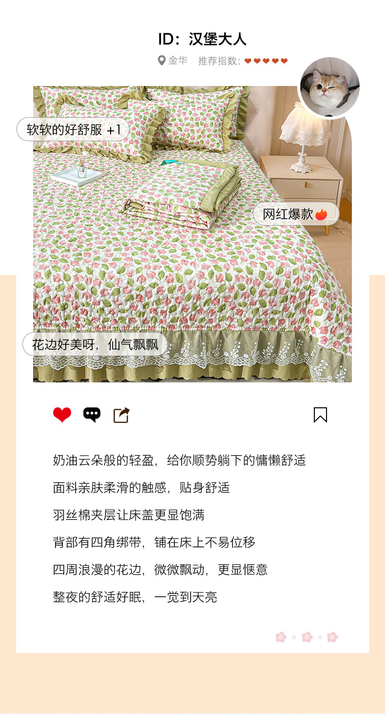 (总)梦柏 2025新款韩版双层纱夹棉绗缝床盖夏被四件套,爱心,春意,芳香,花溪,林荫,绿野仙踪,萌小兔,南瓜派对,清风,思念,香草,小蘑菇,小熊,薰衣草,幽香
