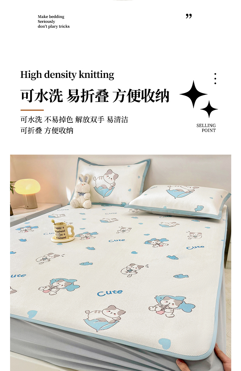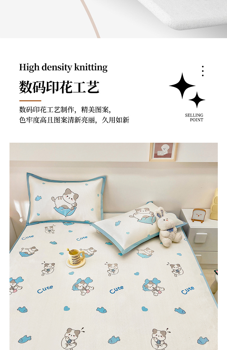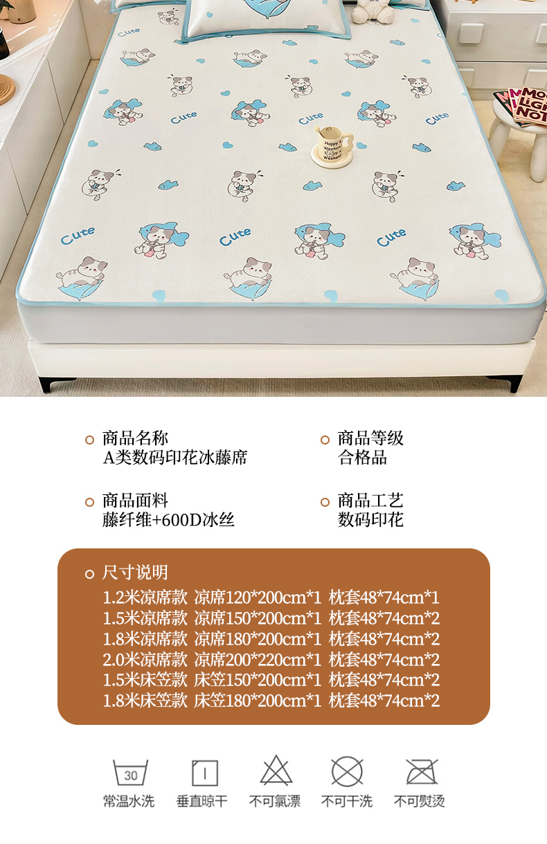 当前位置: 91家纺网 > 商品网购 > 床上用品 > 凉席 > 其他凉席 > 全季家居 2024新款5A抗菌小清新数码印花冰藤席 床笠款-猫猫鱼