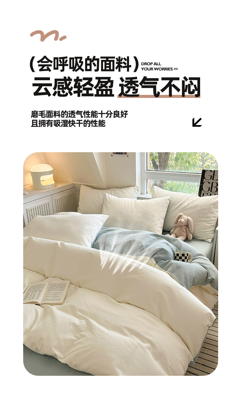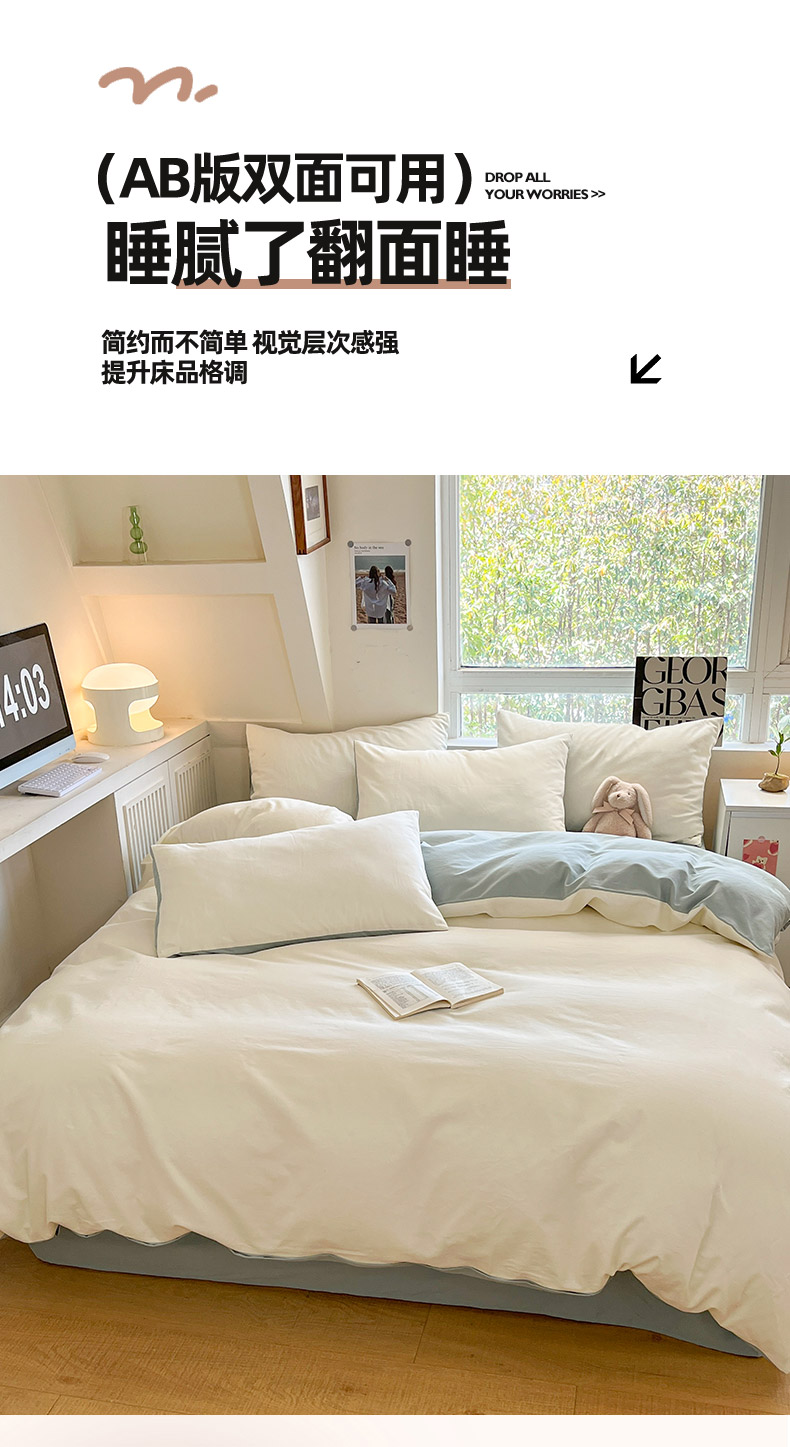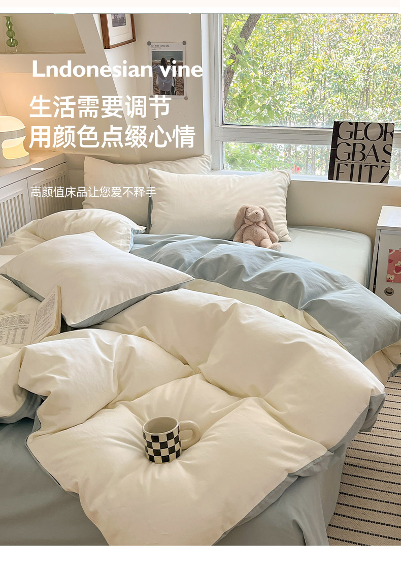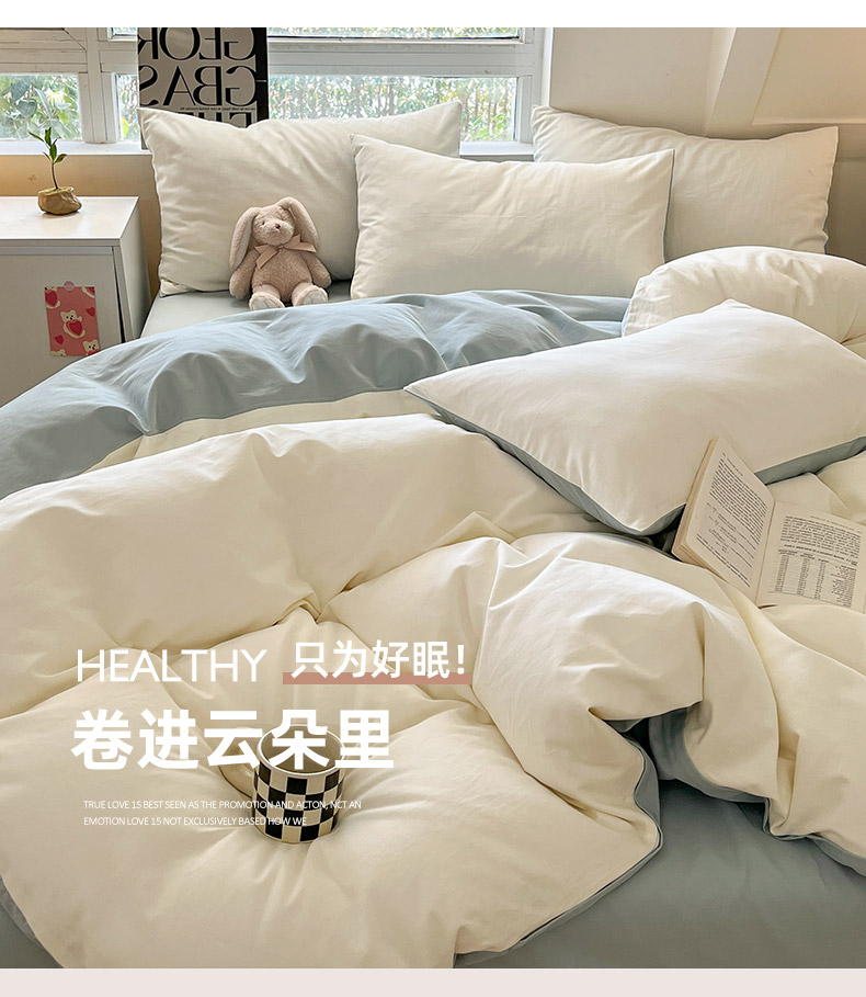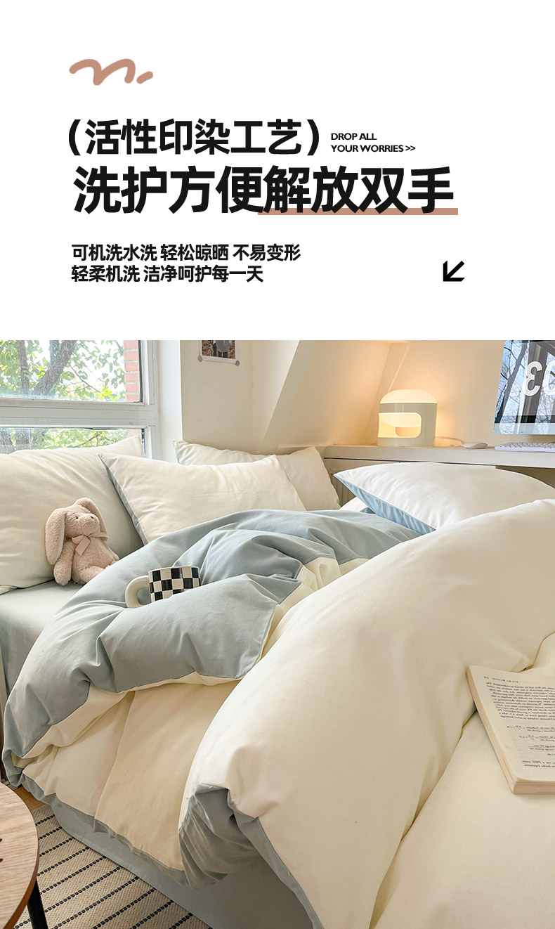 当前位置: 91家纺网 > 商品网购 > 床品套件 > 四件套 > 磨毛活性四件套 > 米粒 2024新款纯色简约双拼磨毛四件套 奶白+天蓝