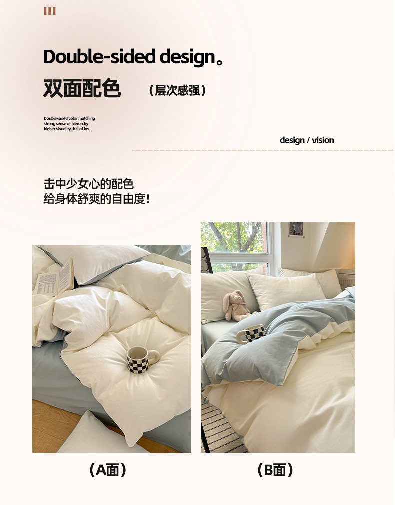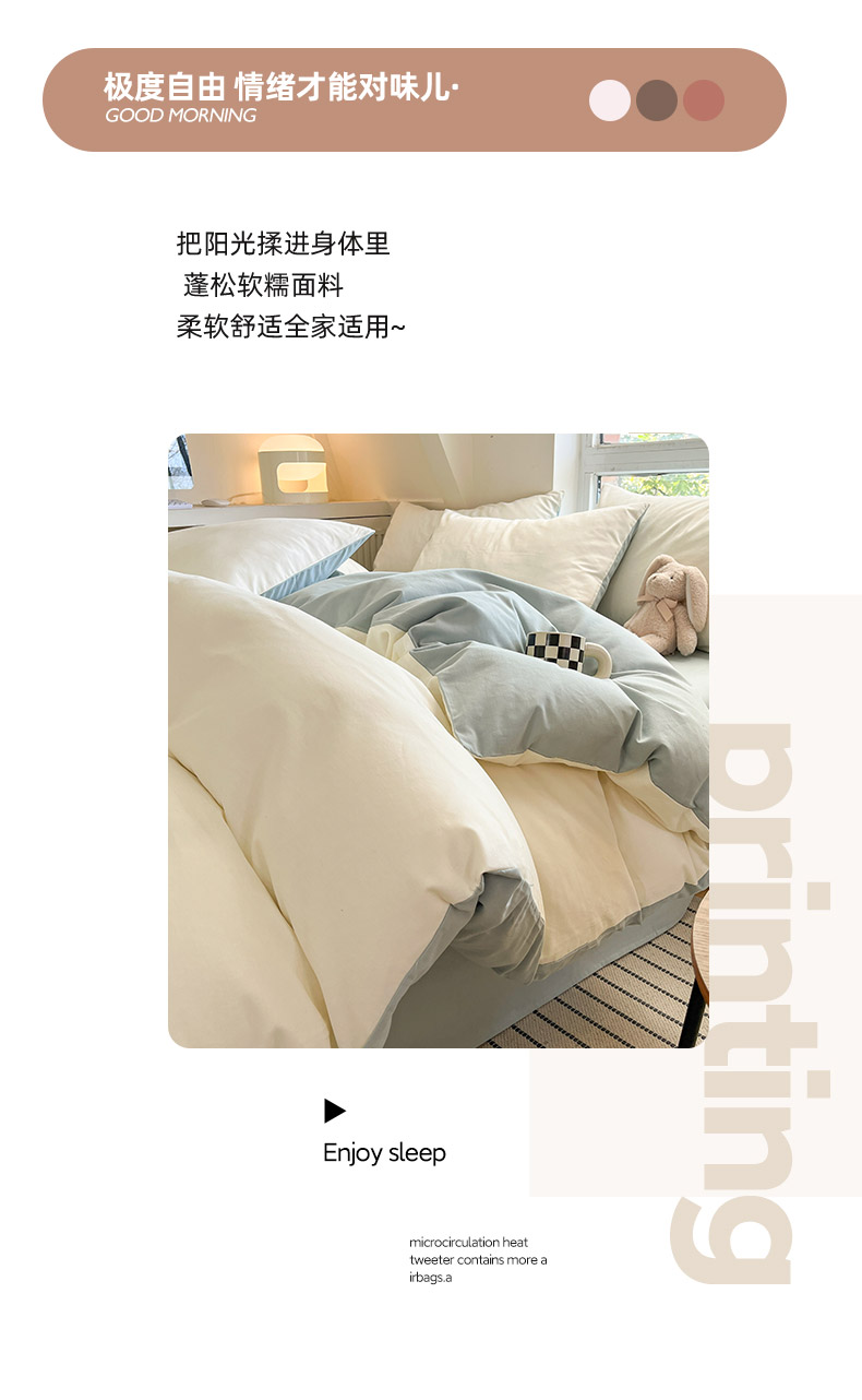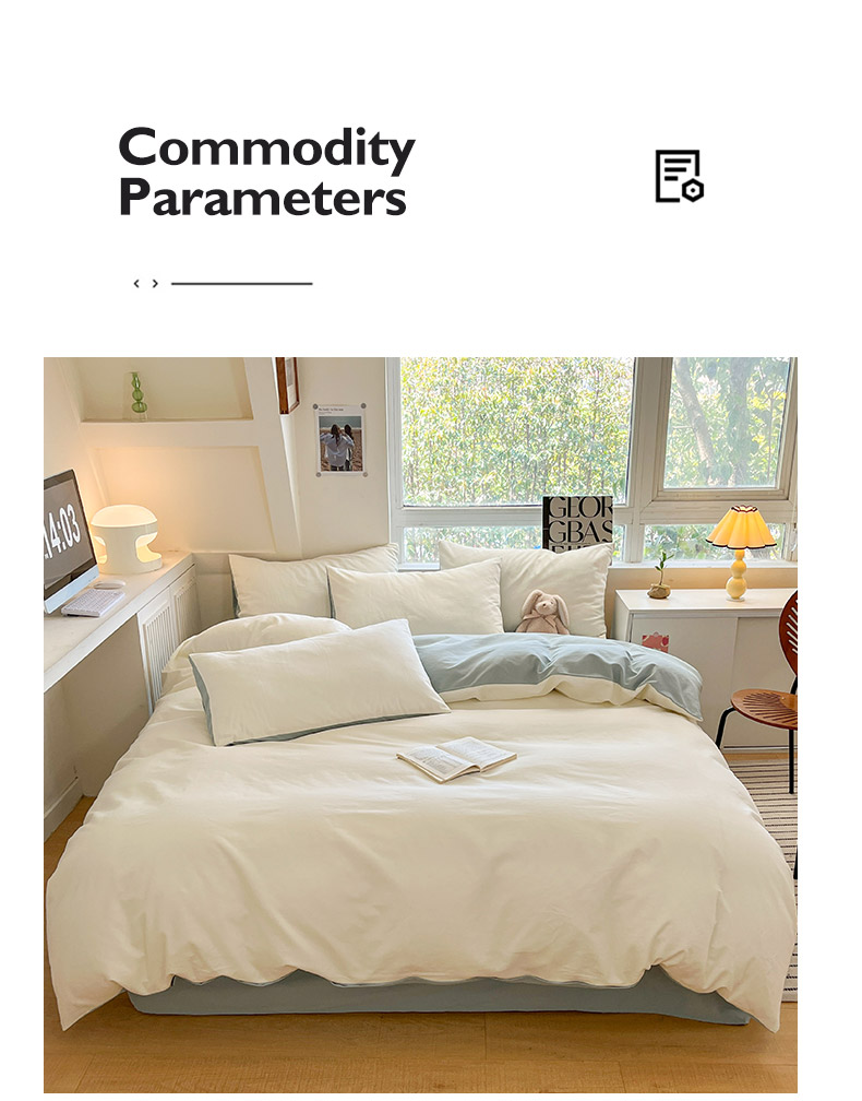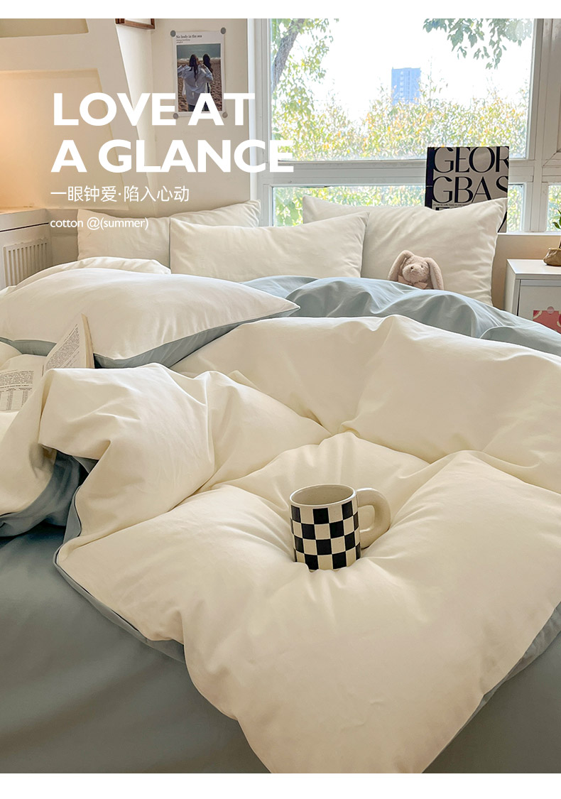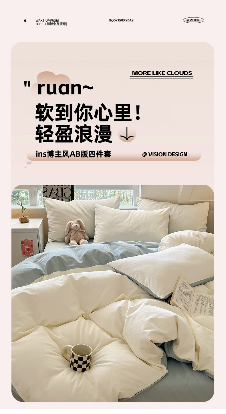 当前位置: 91家纺网 > 商品网购 > 床品套件 > 四件套 > 磨毛活性四件套 > 米粒 2024新款纯色简约双拼磨毛四件套 奶白+天蓝
