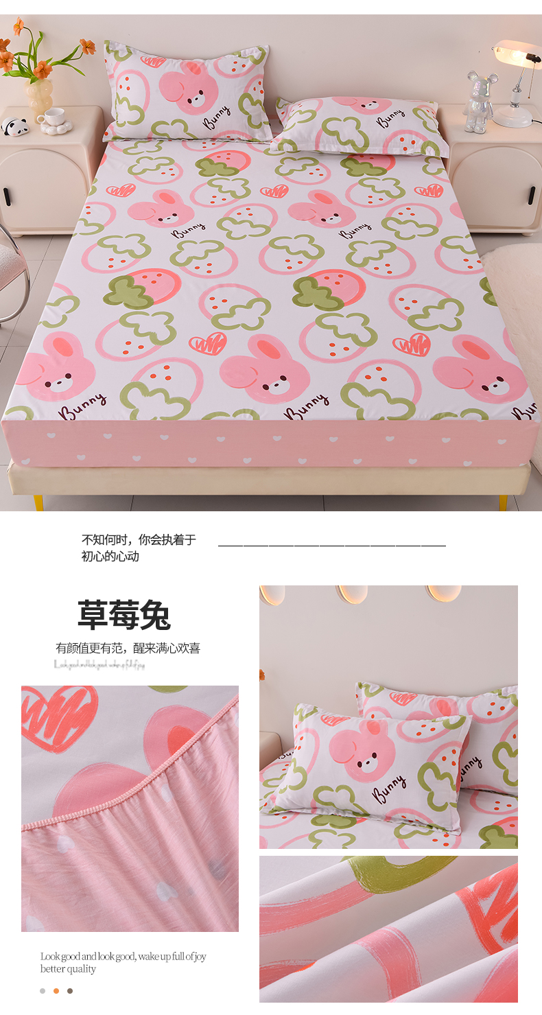 商品名称:床笠人家 2025新款全棉印花防水床笠防水隔尿透气-印花防水床笠 草莓兔