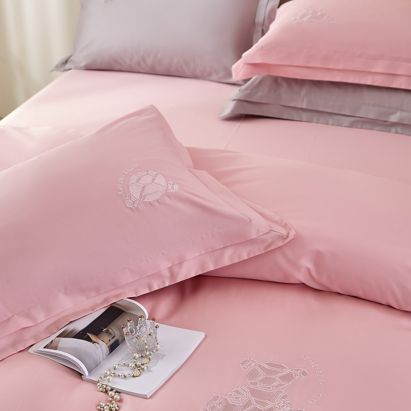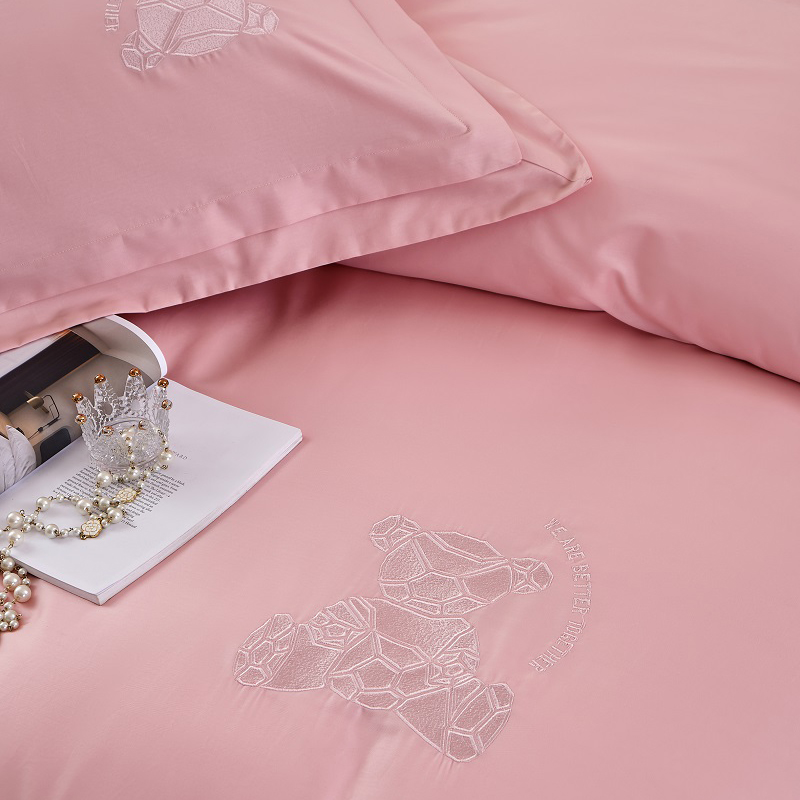 LADY COCO 2024新款全棉翻盖式三边拉链四件套-东方好棉冠军熊系列 粉色