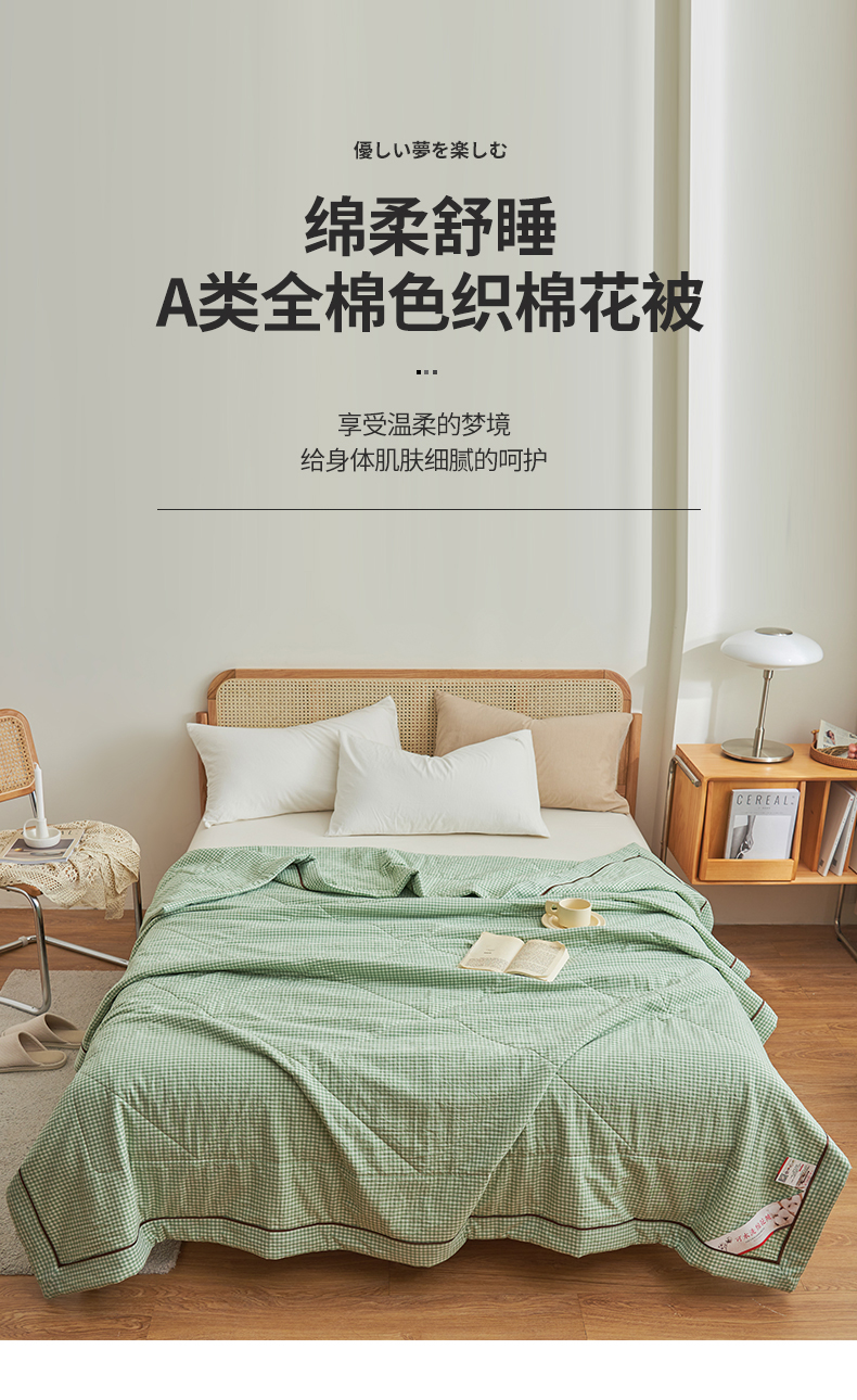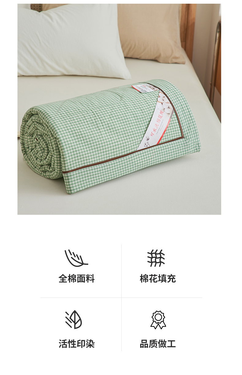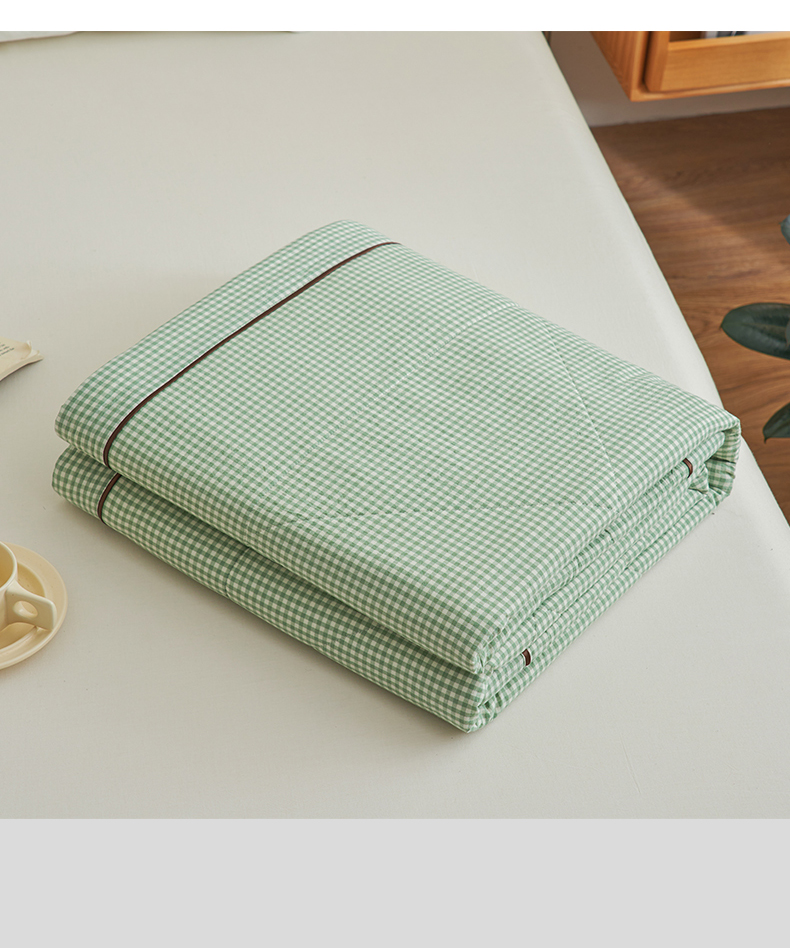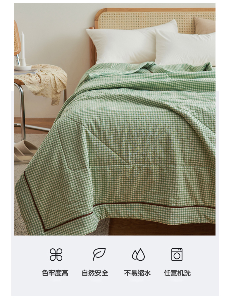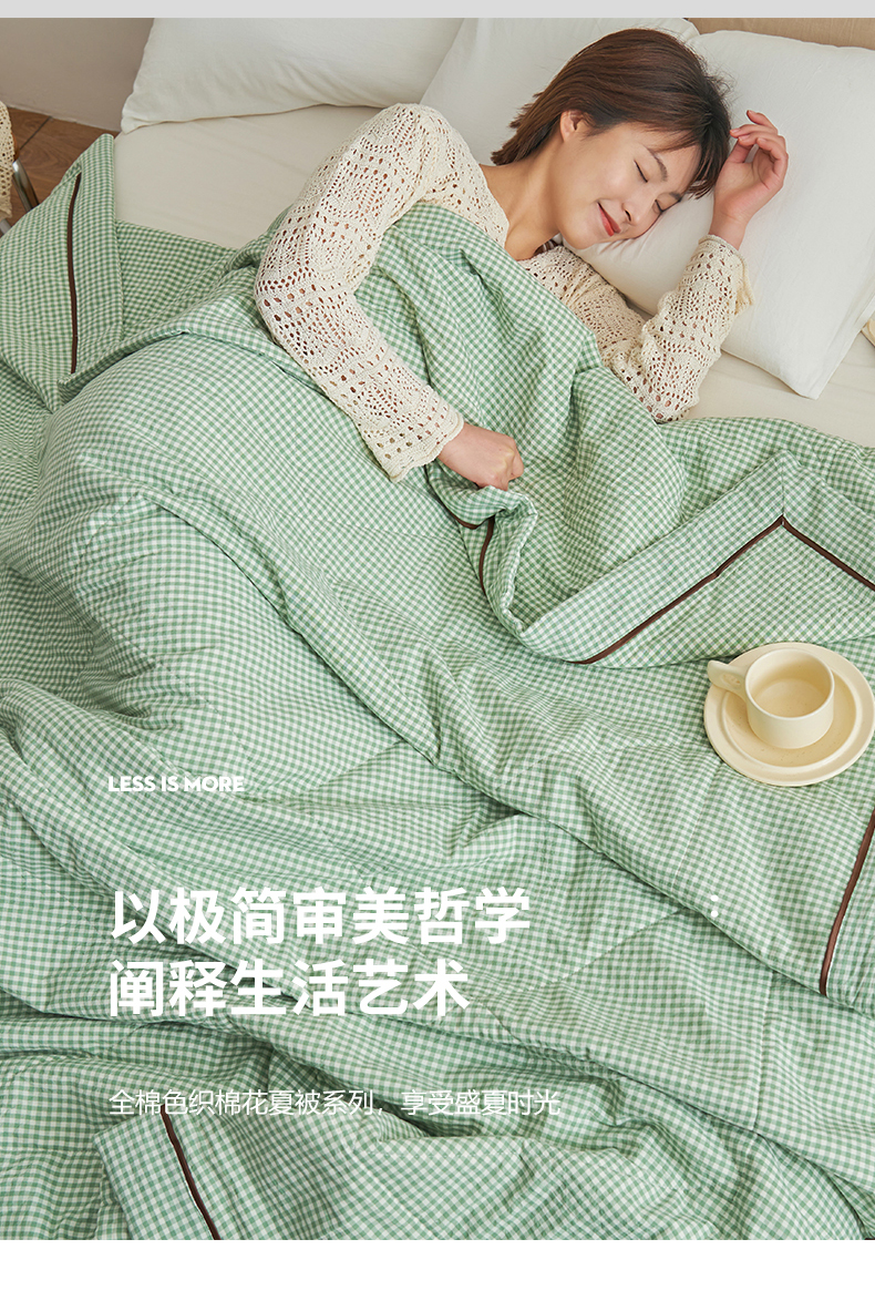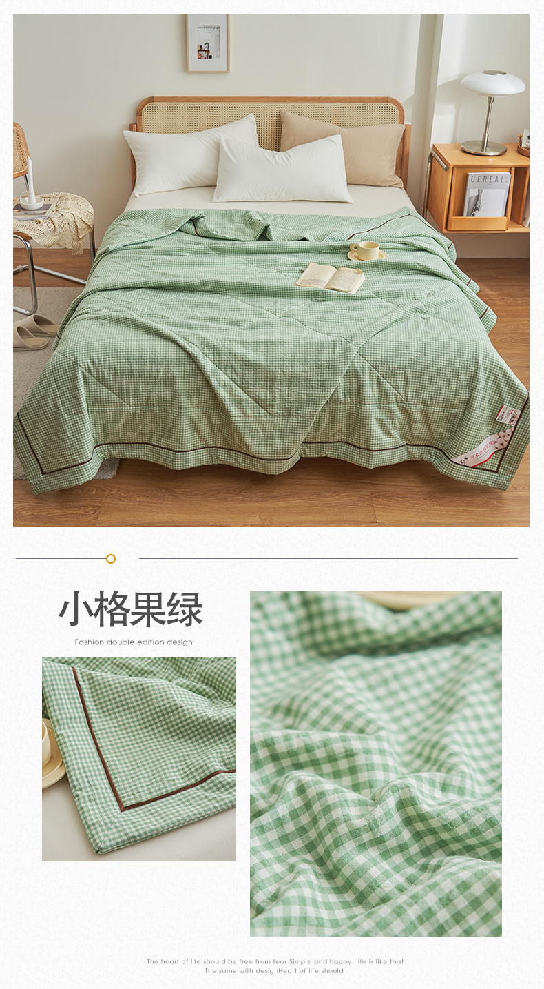 21度C 2024新款A类全棉色织水洗棉棉花夏被 小格果绿