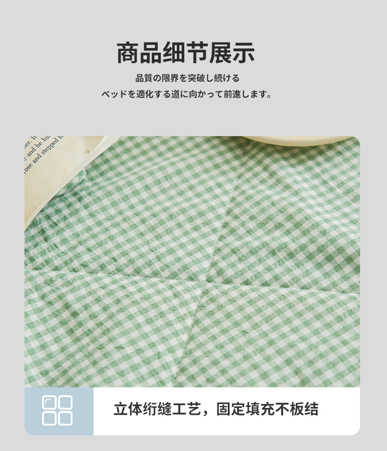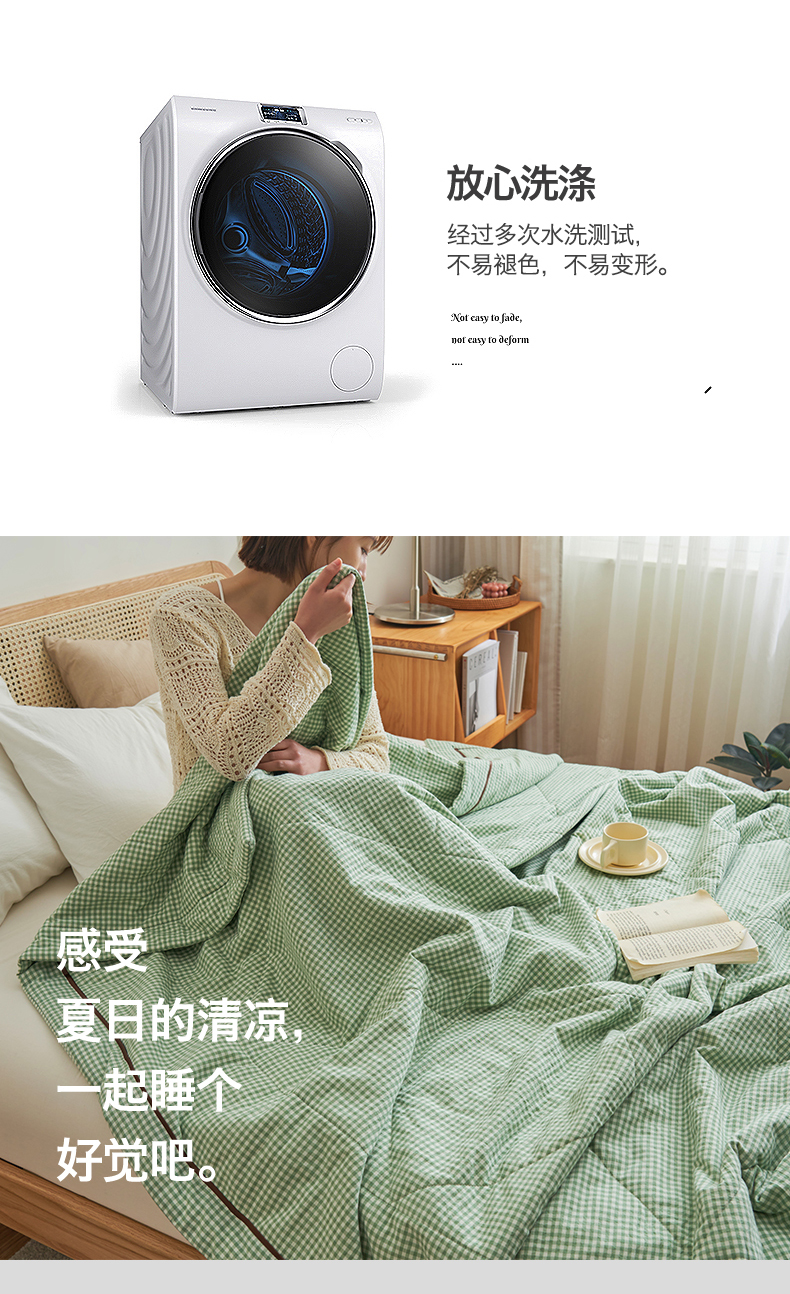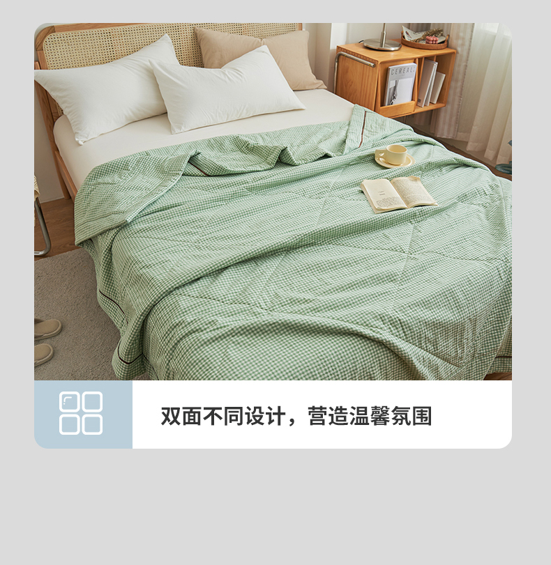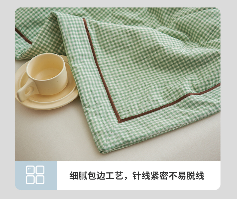 商品名称:21度C 2024新款A类全棉色织水洗棉棉花夏被 小格果绿