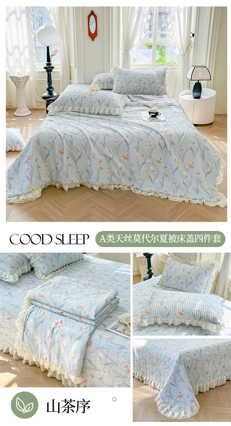 商品名称:宜凡家纺 2024新款莫代尔印花床盖夏被四件套 山茶序