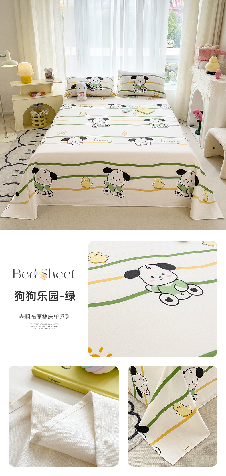 当前位置: 91家纺网 > 商品网购 > 床品套件 > 多件套 > 多件套 > 芃成家纺 2024新款老粗布床单款 狗狗乐园-绿