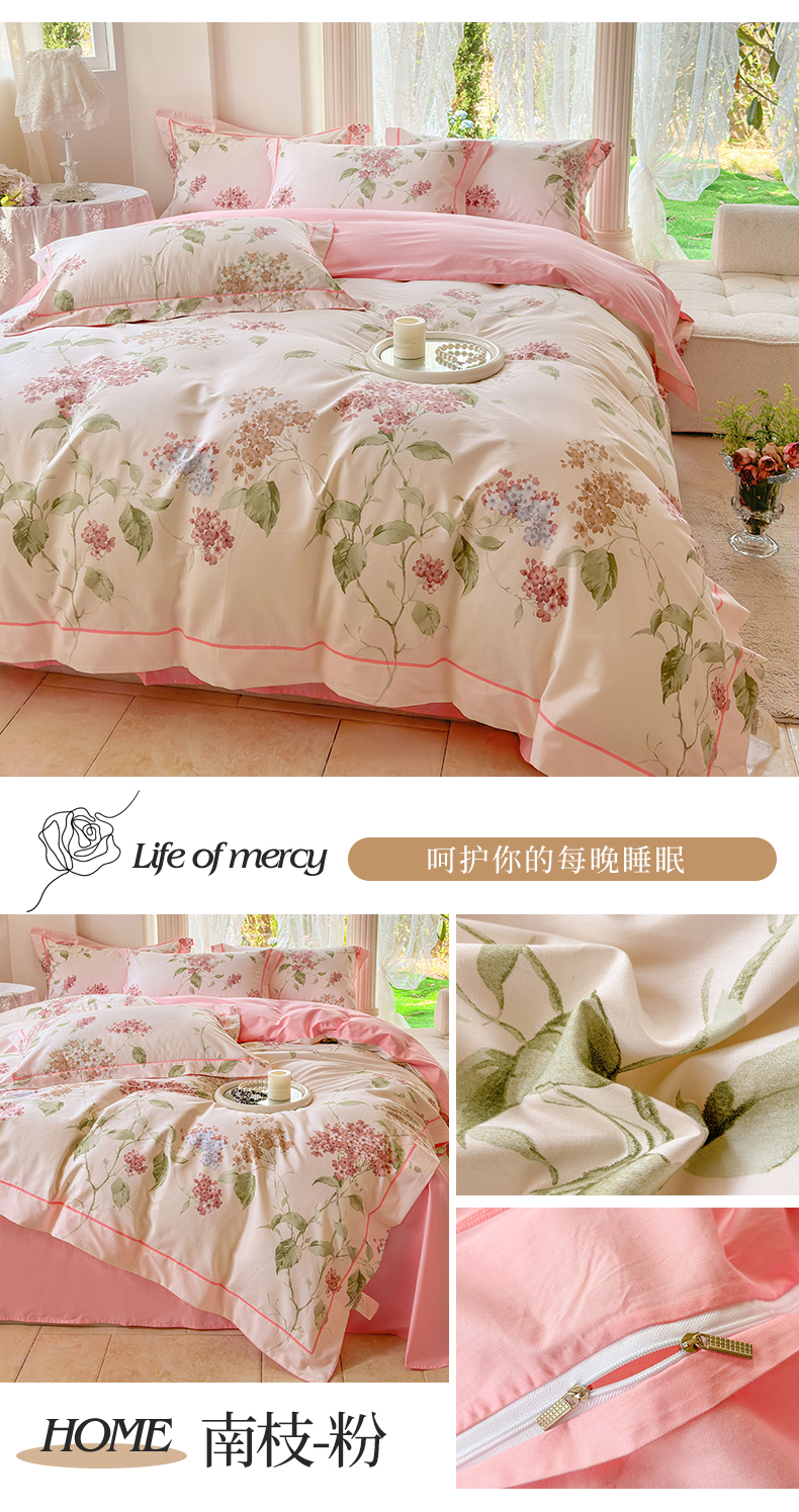 当前位置: 91家纺网 > 商品网购 > 床品套件 > 四件套 > 全棉普通四件套 > 7V 小清新大宽边100%纯棉法式四件套轻奢13376全棉喷气宽幅长绒棉被套床单床笠套件 南枝-粉