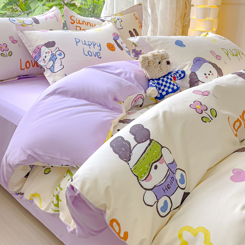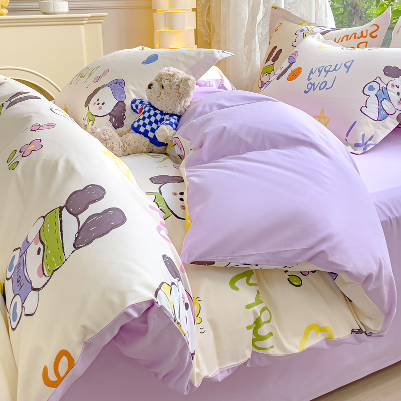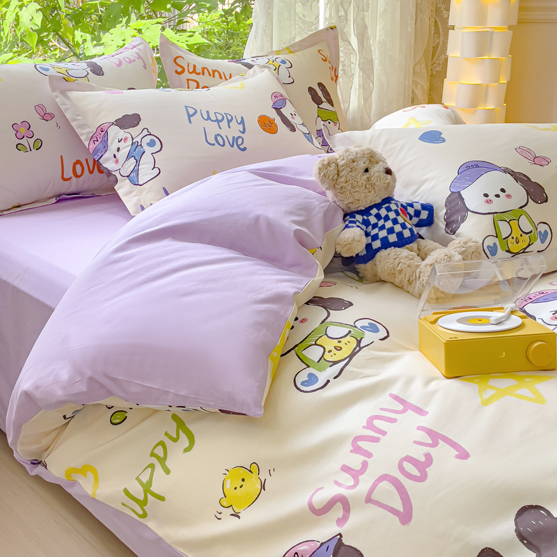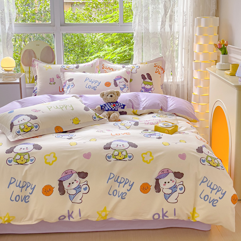 当前位置: 91家纺网 > 商品网购 > 床品套件 > 四件套 > 全棉普通四件套 > 金鑫汇家纺 2024新款全棉纯棉卡通印花四件套单品系列-四件套狗狗乐园